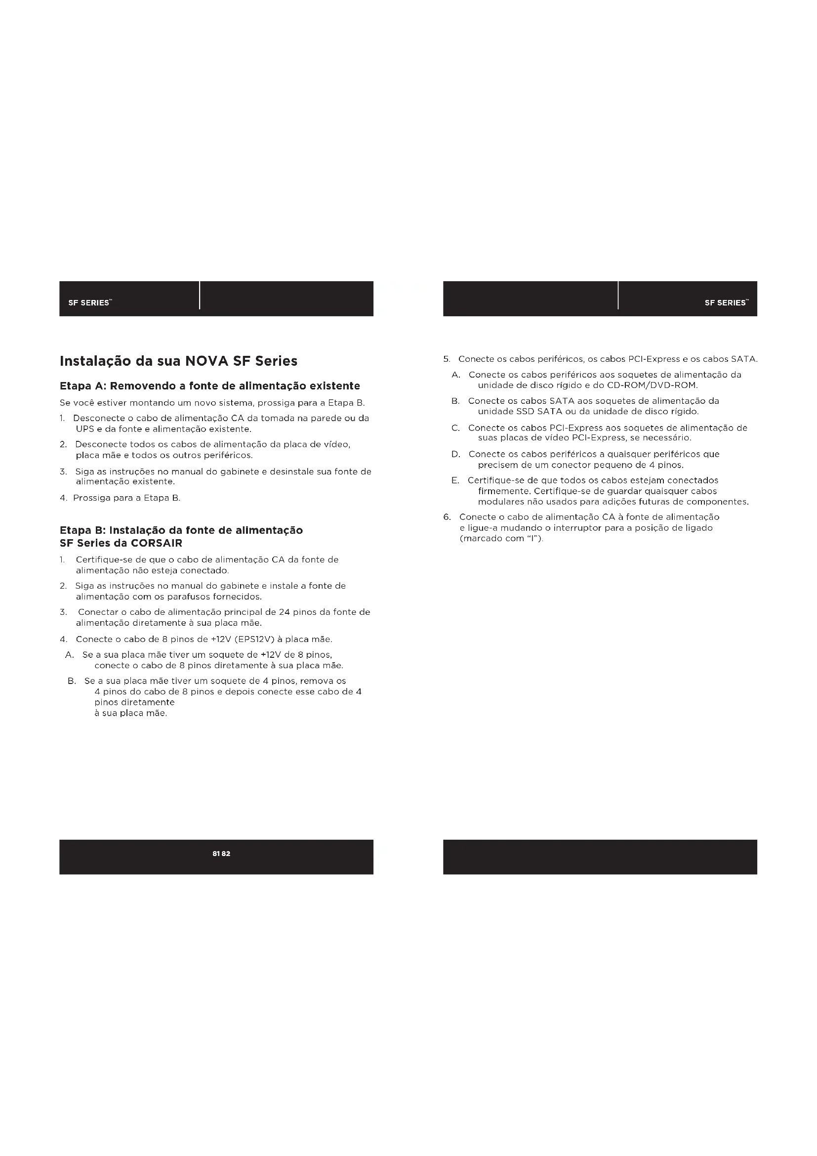 Etapa B: Instalação da fonte de alimentação SF Series da CORSAIR