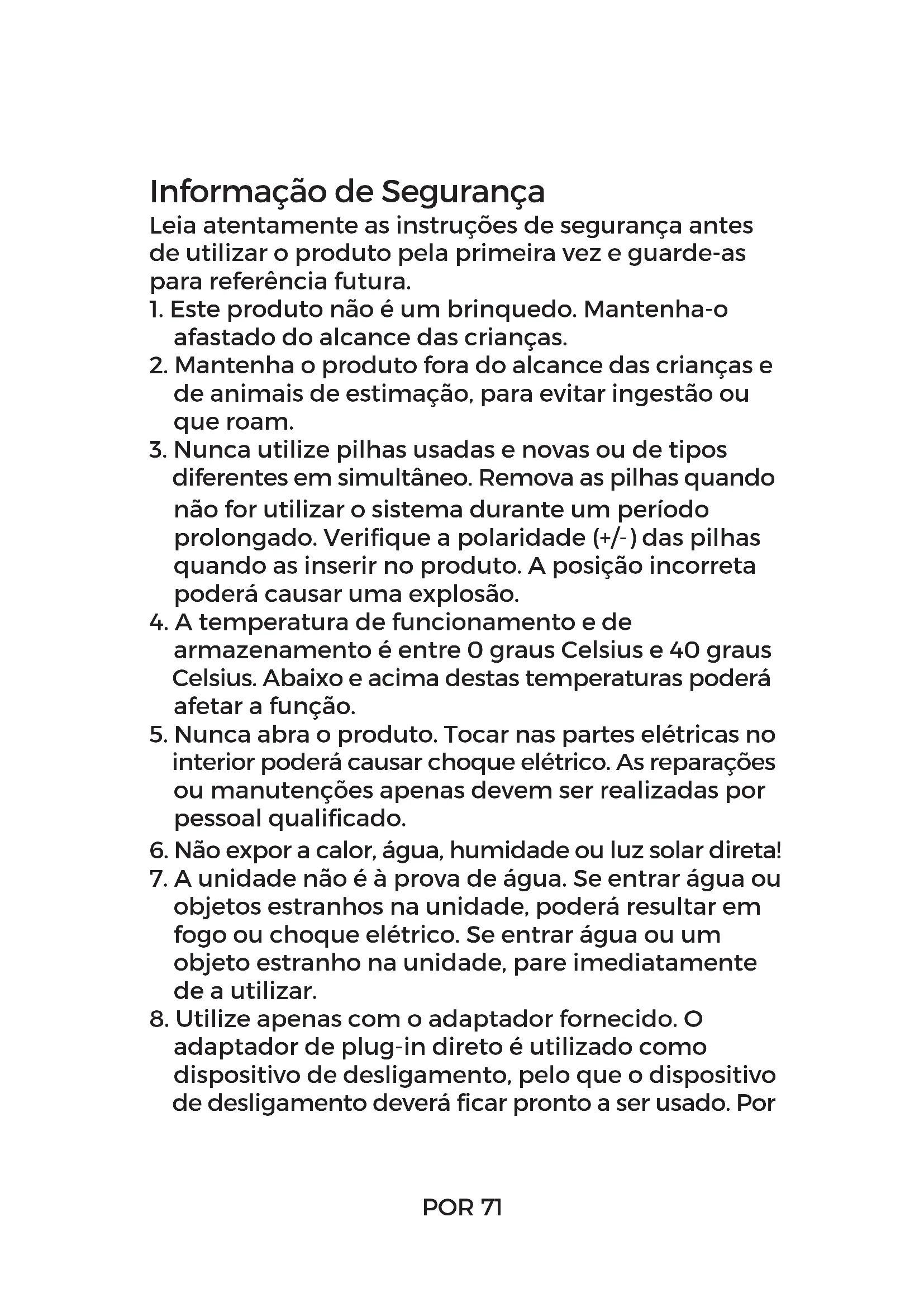 1. Este produto não é um brinquedo. Mantenha-o