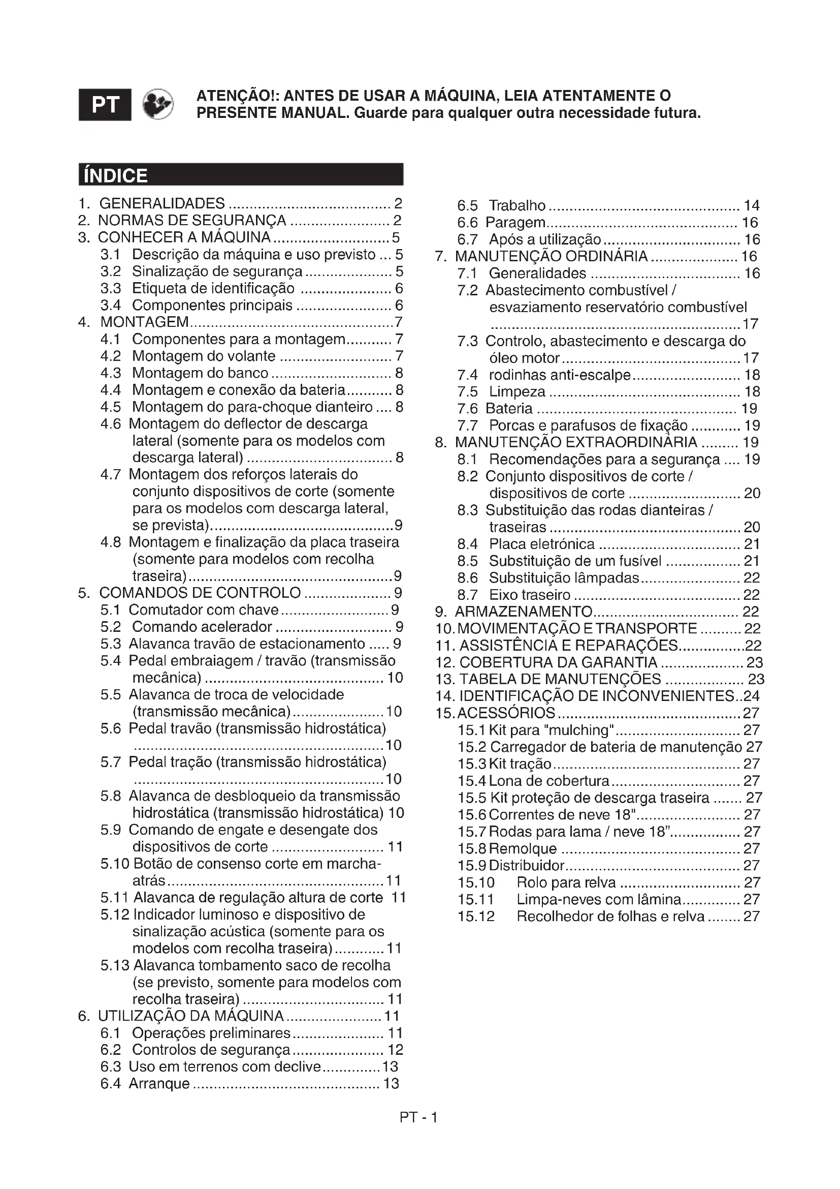 15.12 Recolhedor de folhas e relva ........ 27PT - 2