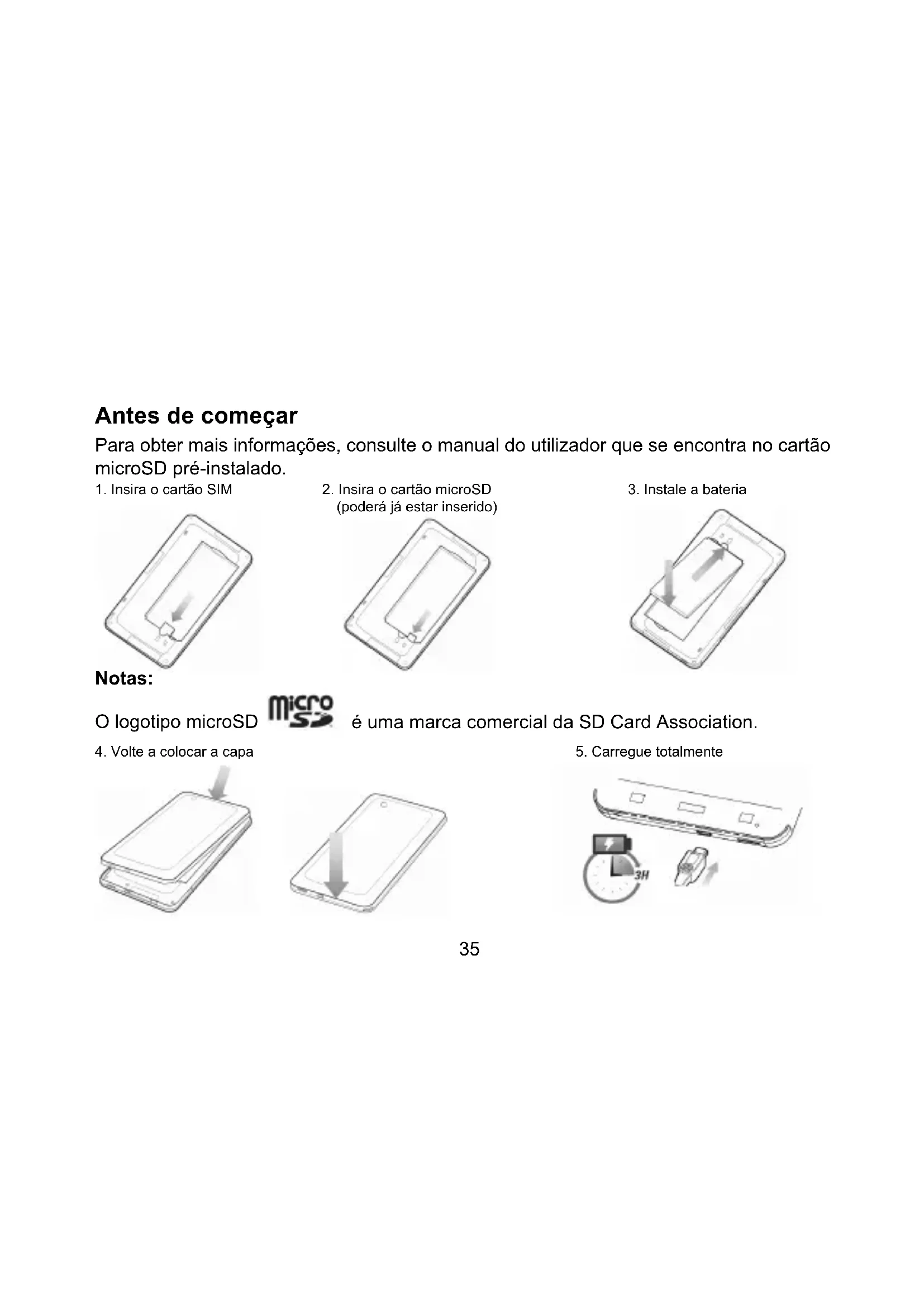 Notas: O logotipo microSD é uma marca comercial da SD Card Association.