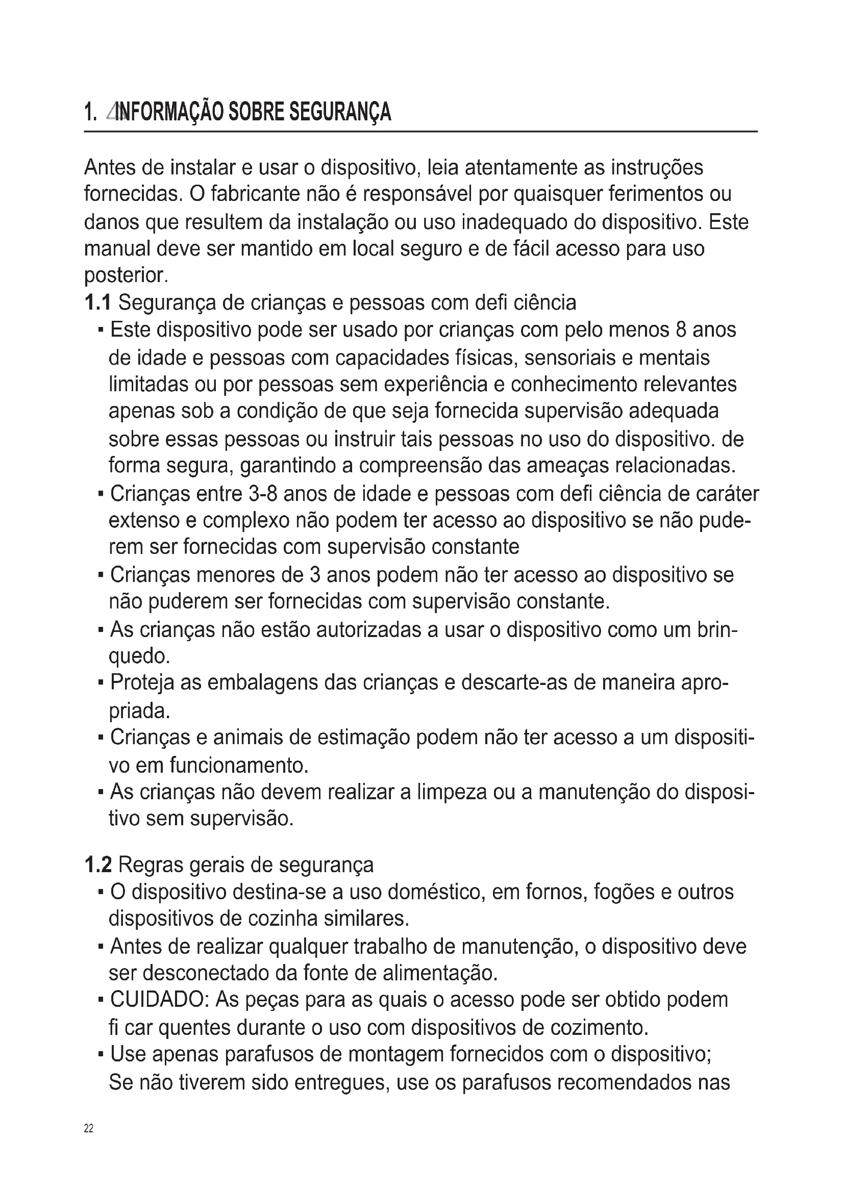 - As crianças não devem realizar a limpeza ou a manutenção do disposi- tivo sem supervisão.