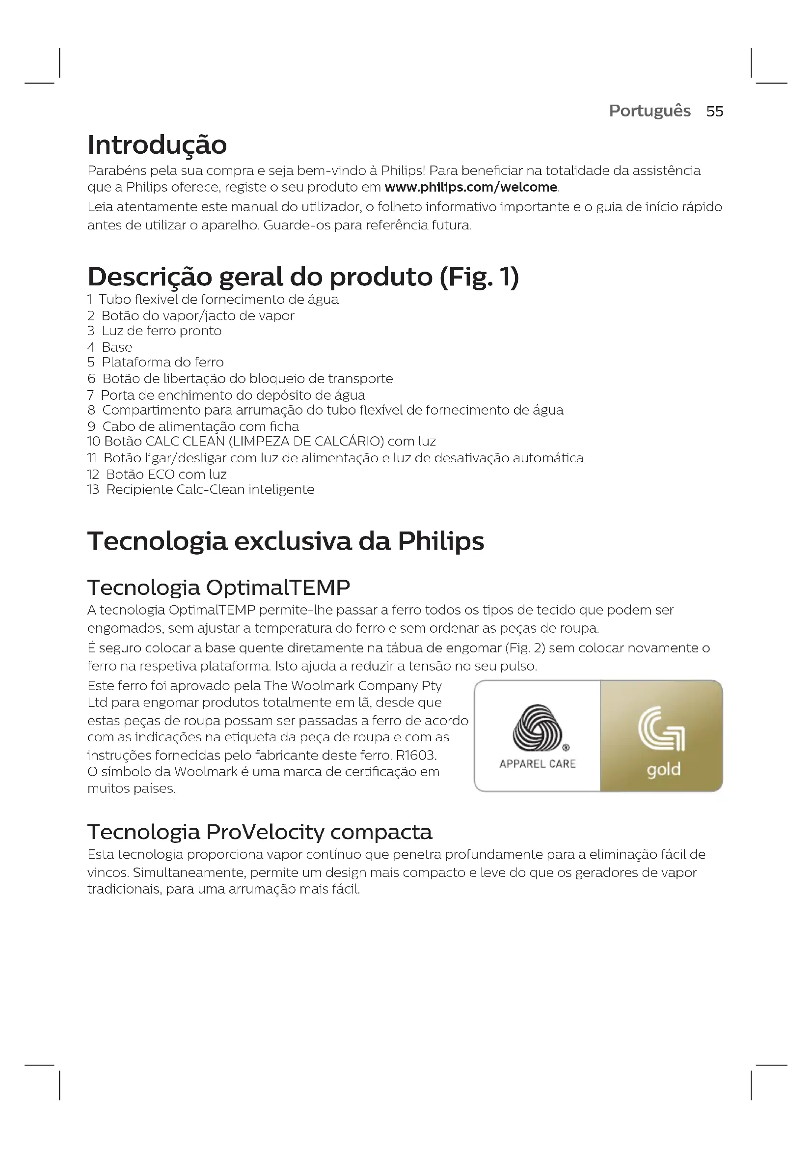 Perfectcare Compact GC7840 - Ferro de passar PHILIPS - Manual de utilização gratuito
