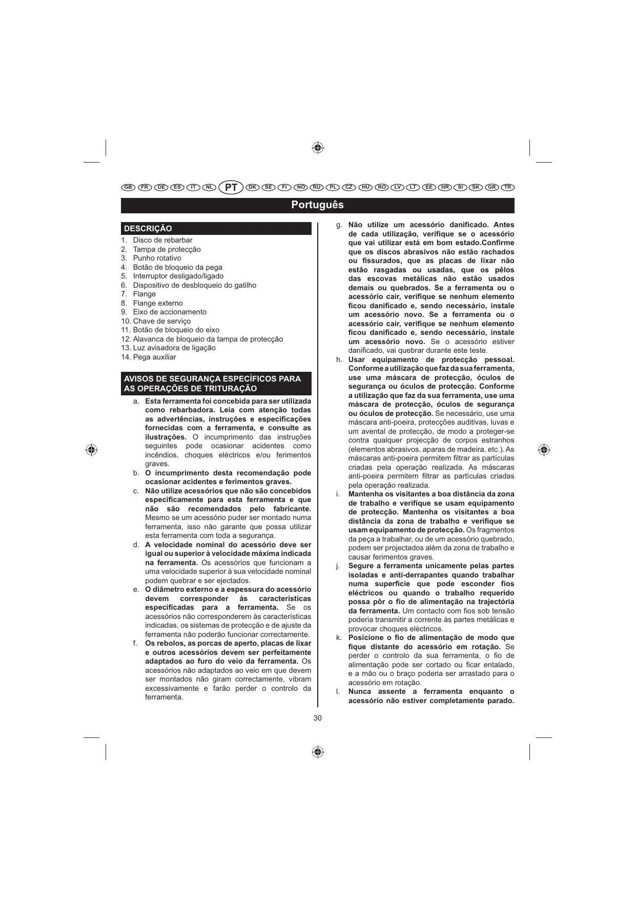e. Os discos não devem ser realizados para fins differsentes das operações de rebarbar.