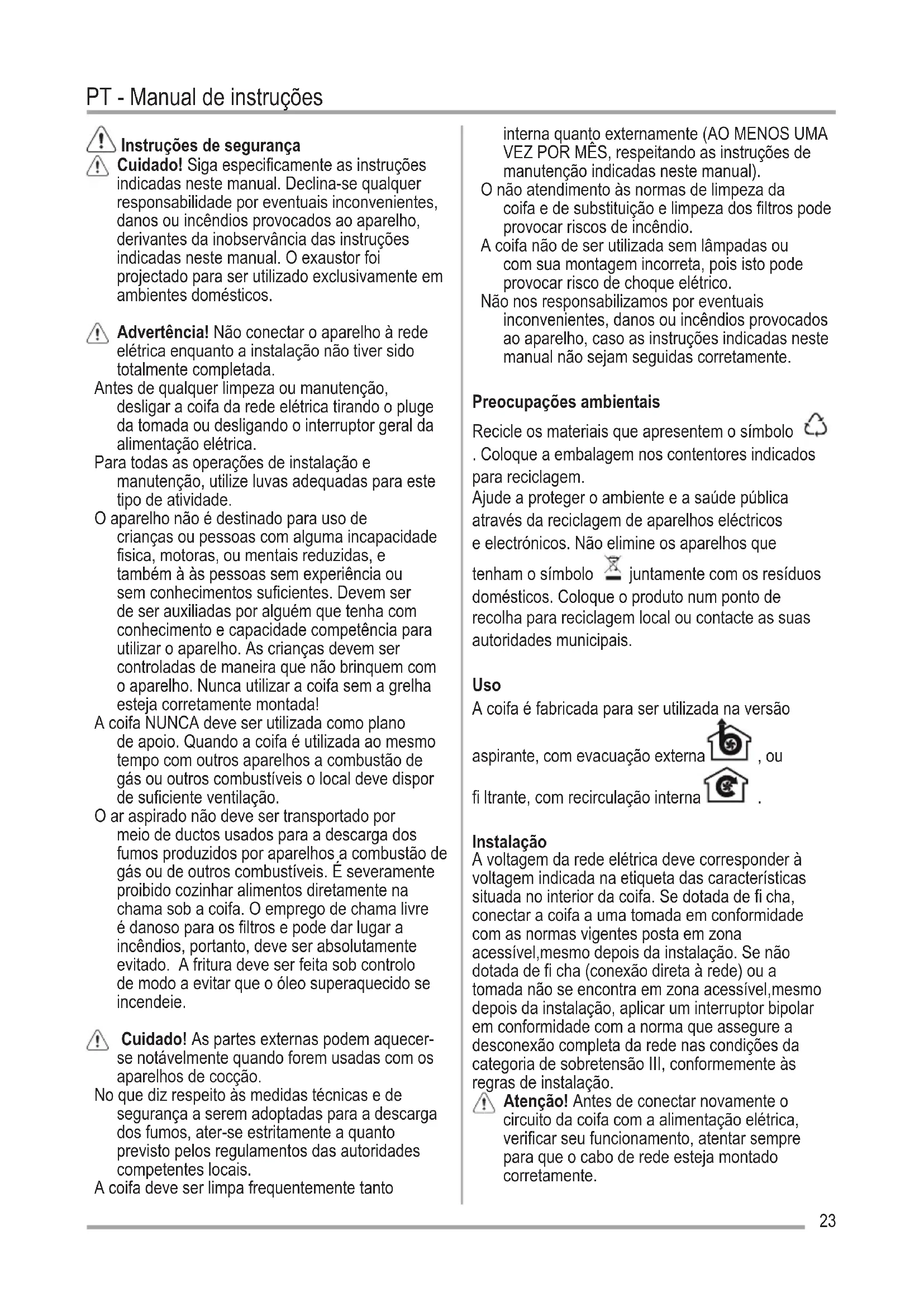 Exaustor Manual de instruções 23