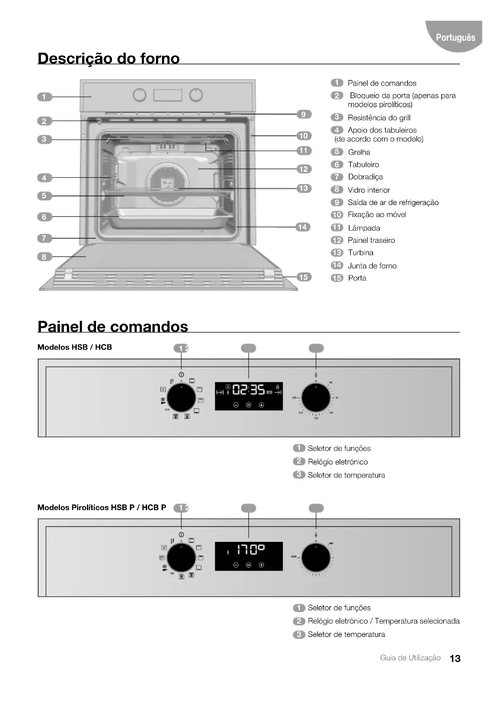 Modelos Pirolíticos HSB P / HCB P14 Guia de Utilização Símbolos do seletor de funções Funções do forno