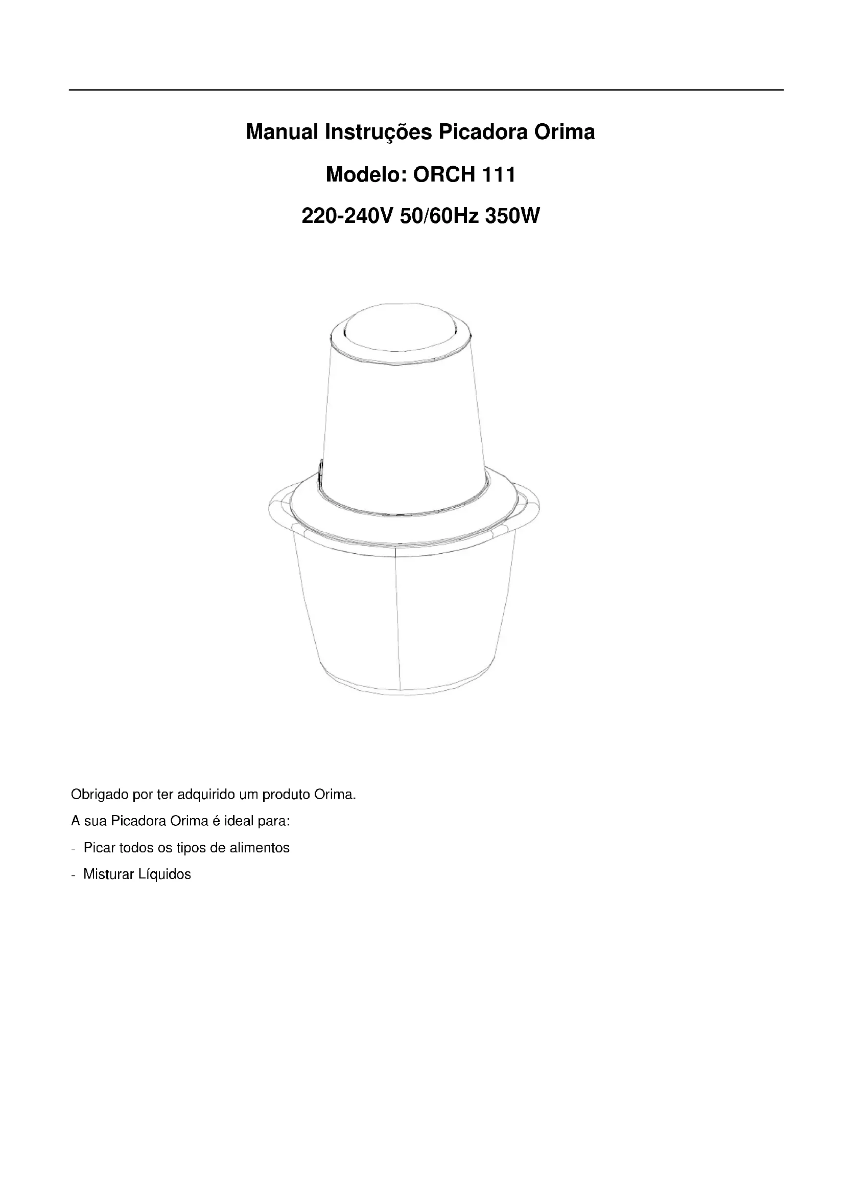 Manual Instruções Picadora Orima Modelo: ORCH 111 220-240V 50/60Hz 350W