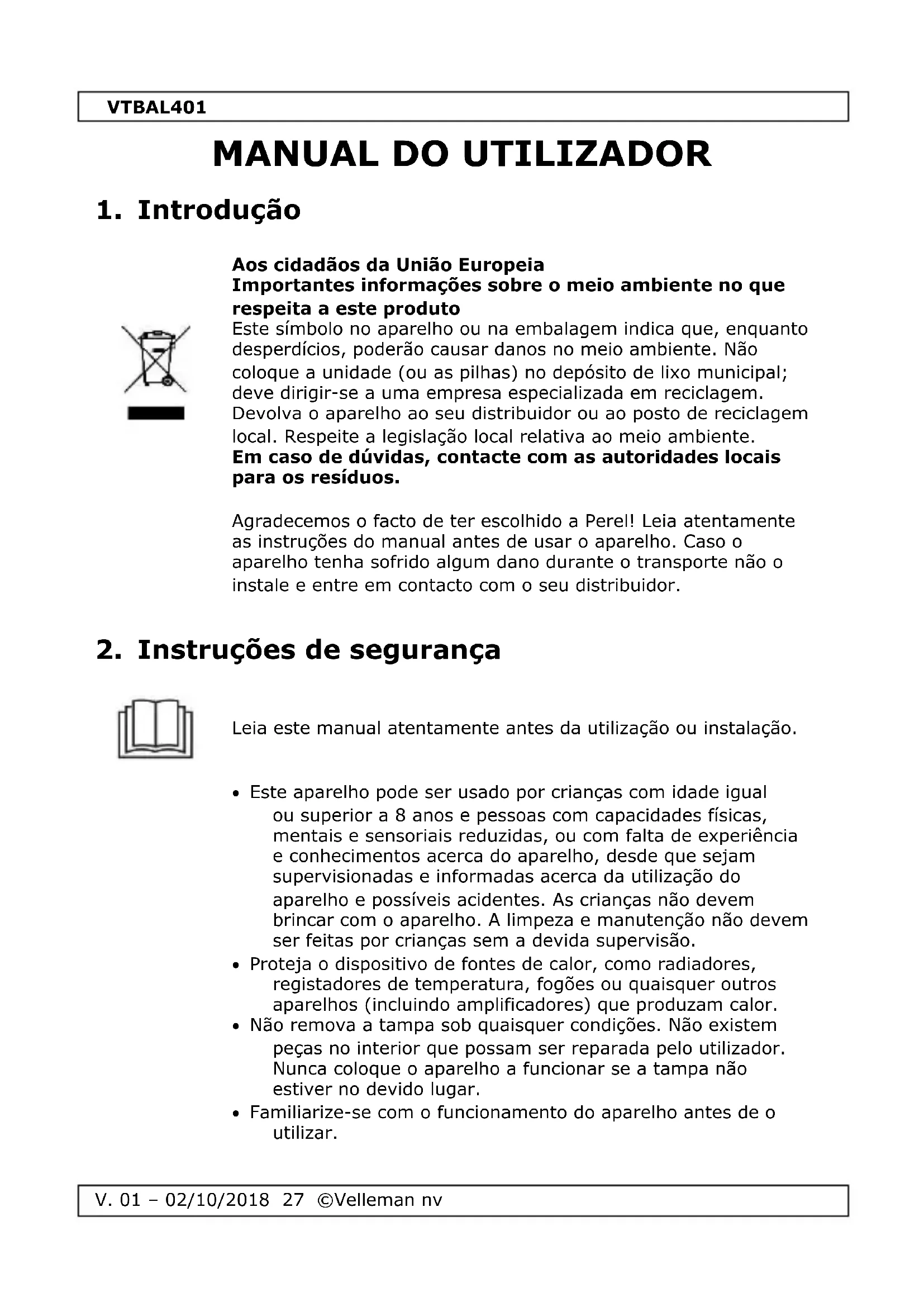 VTBAL401 - Balanças Perel - Manual de utilização gratuito
