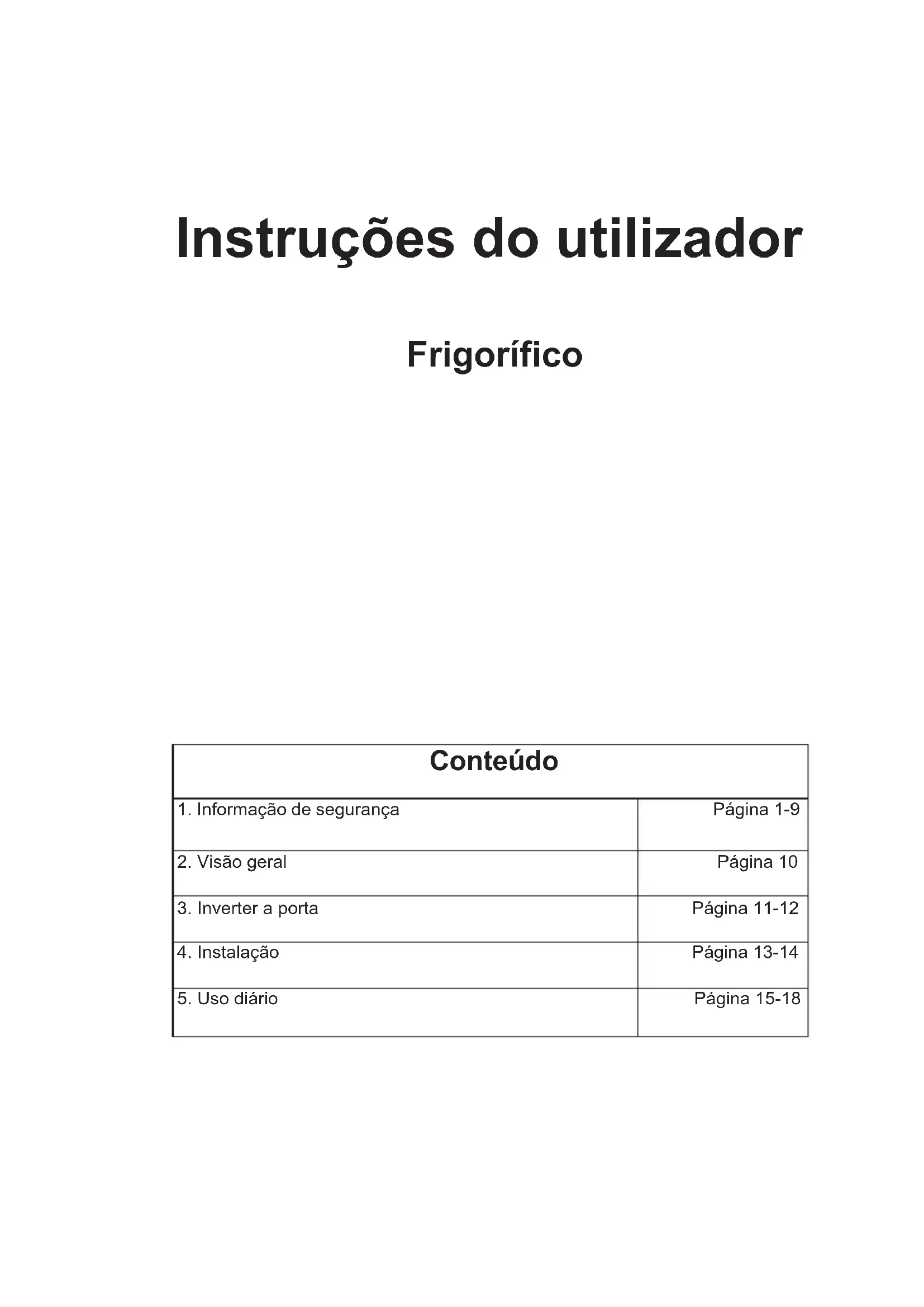 Página 15-18Informação de Segurança No interesse da sua segurança e para garantir o uso correto, antes de instalar e de usar o aparelho pela primeira vez, deve ler cuidadosamente este manual do utilizador, incluindo as dicas e as advertências. Para evitar erros e acidentes desnecessários, é importante assegurar que todas as pessoas que estão a usar este aparelho estão totalmente familiarizadas com o funcionamento e as funções de segurança do mesmo. Deve guardar estas instruções e assegurar que as mesmas acompanham o aparelho se o mesmo for movido ou vendido, de modo que todas as pessoas que o utilizem durante a sua vida útil estejam adequadamente informados sobre o uso e a segurança do aparelho. Para a segurança de pessoas e bens deve manter as precauções mencionadas nestas instruções do utilizador dado o fabricante não poder ser responsabilizado por danos provocados por negligência. Segurança de pessoas vulneráveis e de crianças