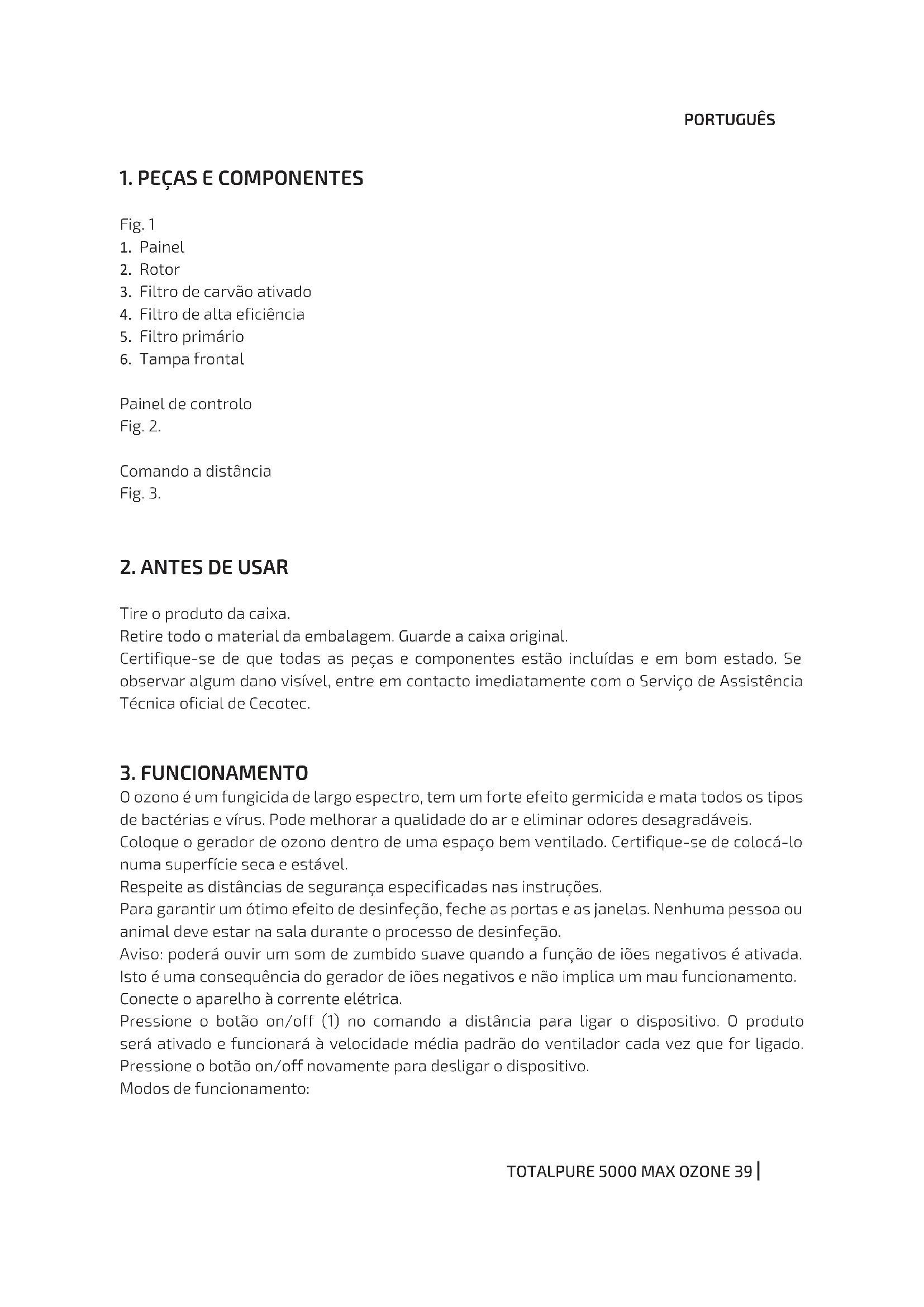 TotalPure 5000 Max Ozone - Gerador CECOTEC - Manual de utilização gratuito