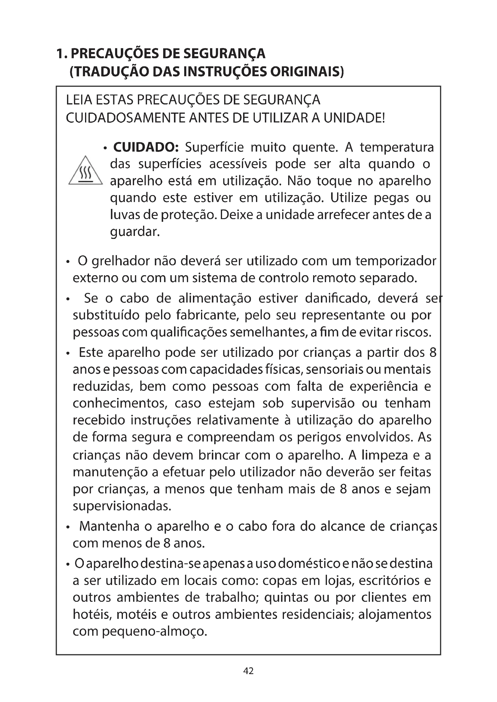 1. Instruções de segurança . . . . . . . . . . . . 42