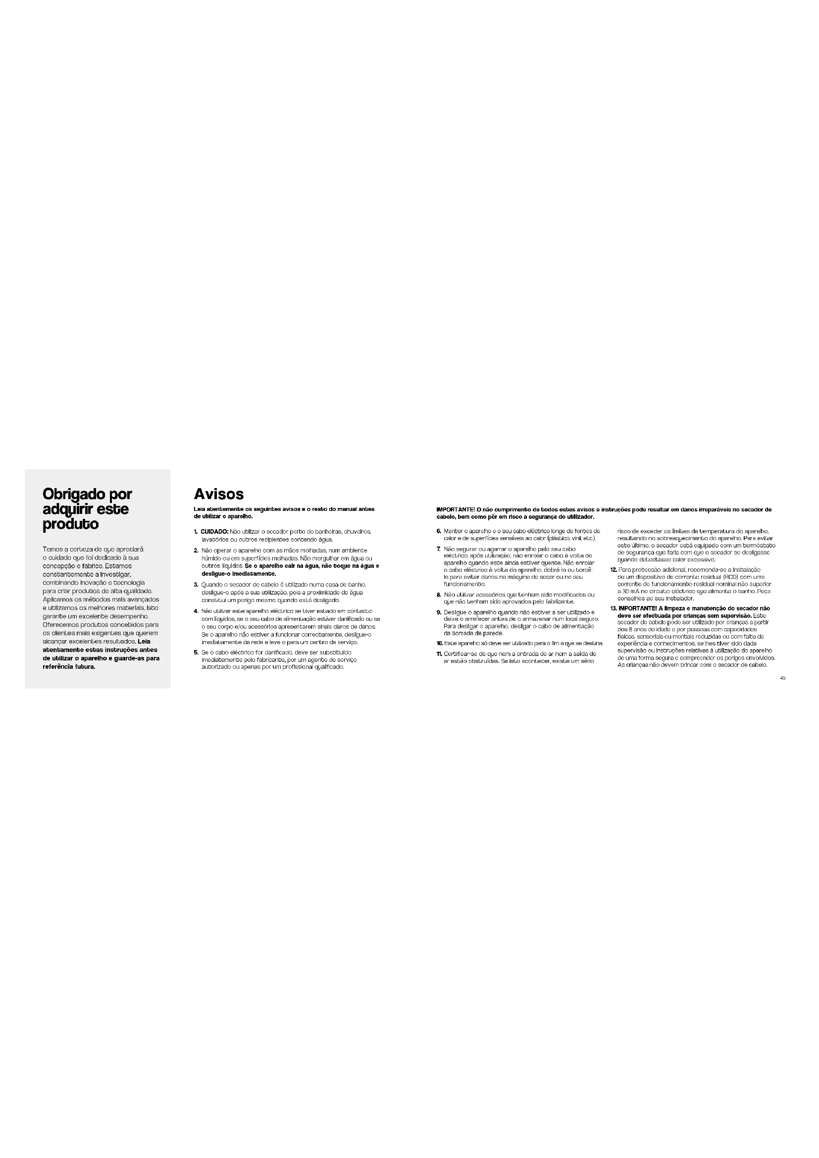 1. CUIDADO: Não utilizar o secador perto de banheiras, chuveiros,