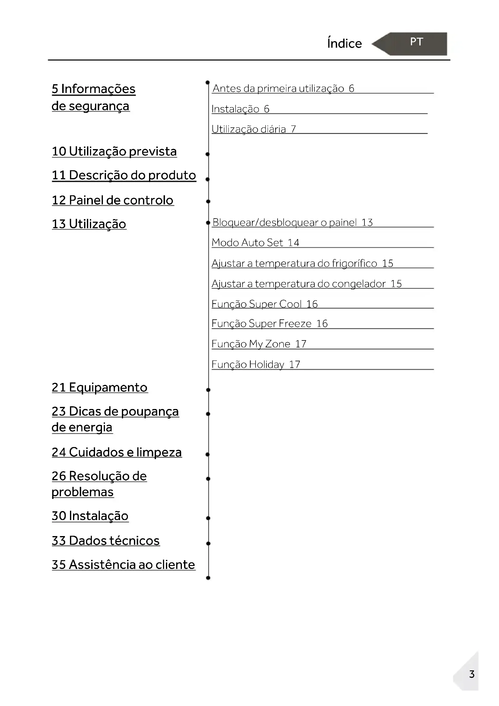 23 Dicas de poupança de energia 24 Cuidados e limpeza 26 Resolução de problemas 30 Instalação 33 Dados técnicos 35 Assistência ao clienteObrigado