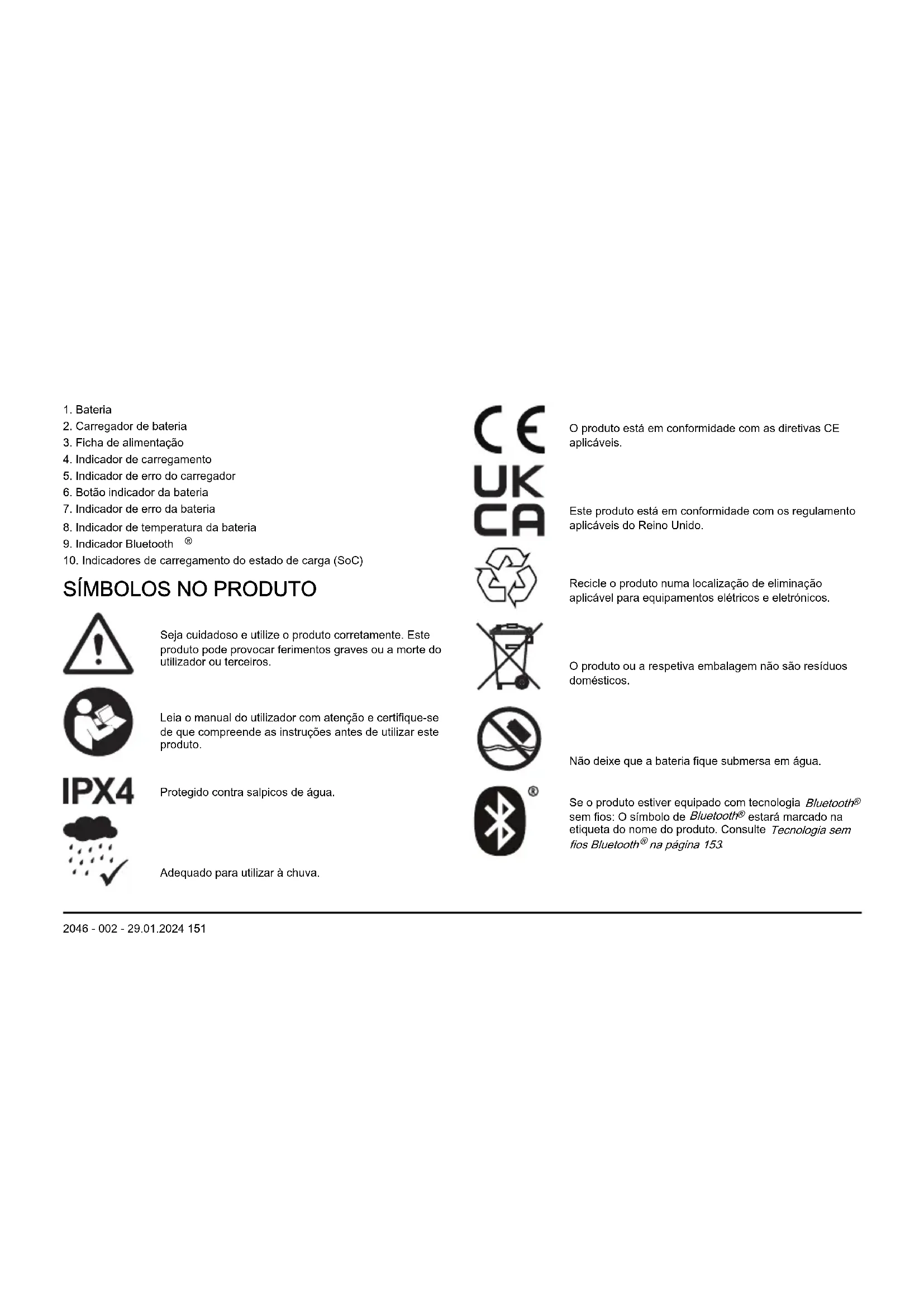 2046 - 002 - 29.01.2024 151Nota: Os restantes símbolos/autocolantes existentes no produto dizem respeito a requisitos para homologação em algumas áreas comerciais.
