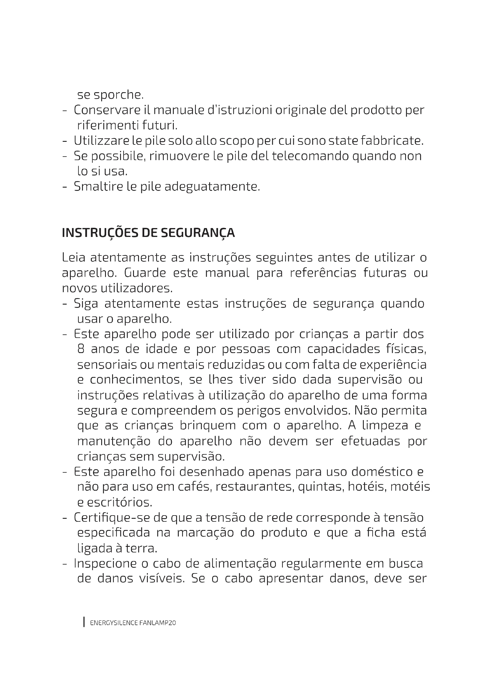 Encontre gratuitamente o manual do aparelho EnergySilence FanLamp CECOTEC em formato PDF.