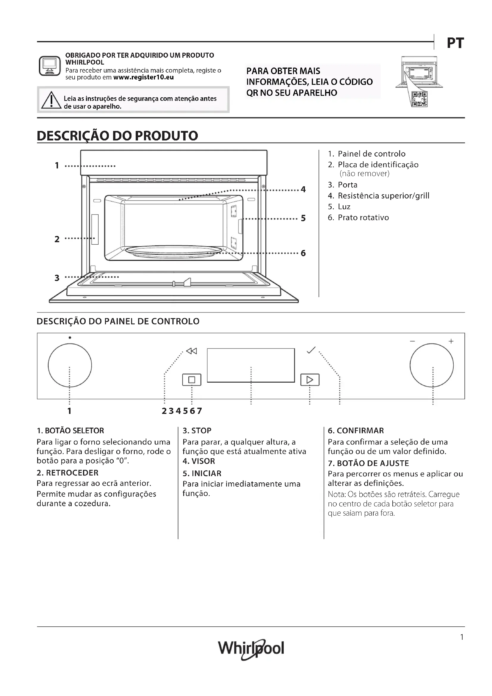 WHIRLPOOL Para receber uma assistência mais completa, registe o seu produto em www.register10.eu Leia as instruções de segurança com atenção antes de usar o aparelho.