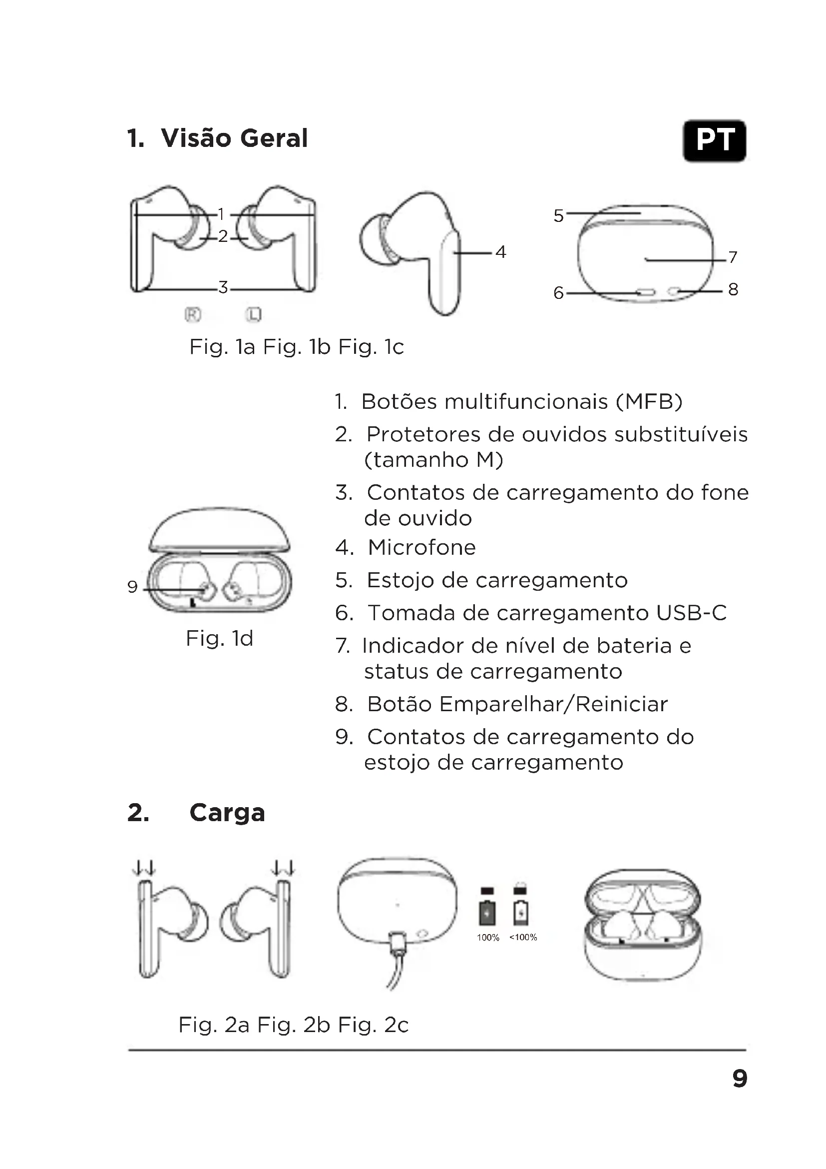 - Fig.2a: Remova todas as fitas dos fones de ouvido antes de carregar.