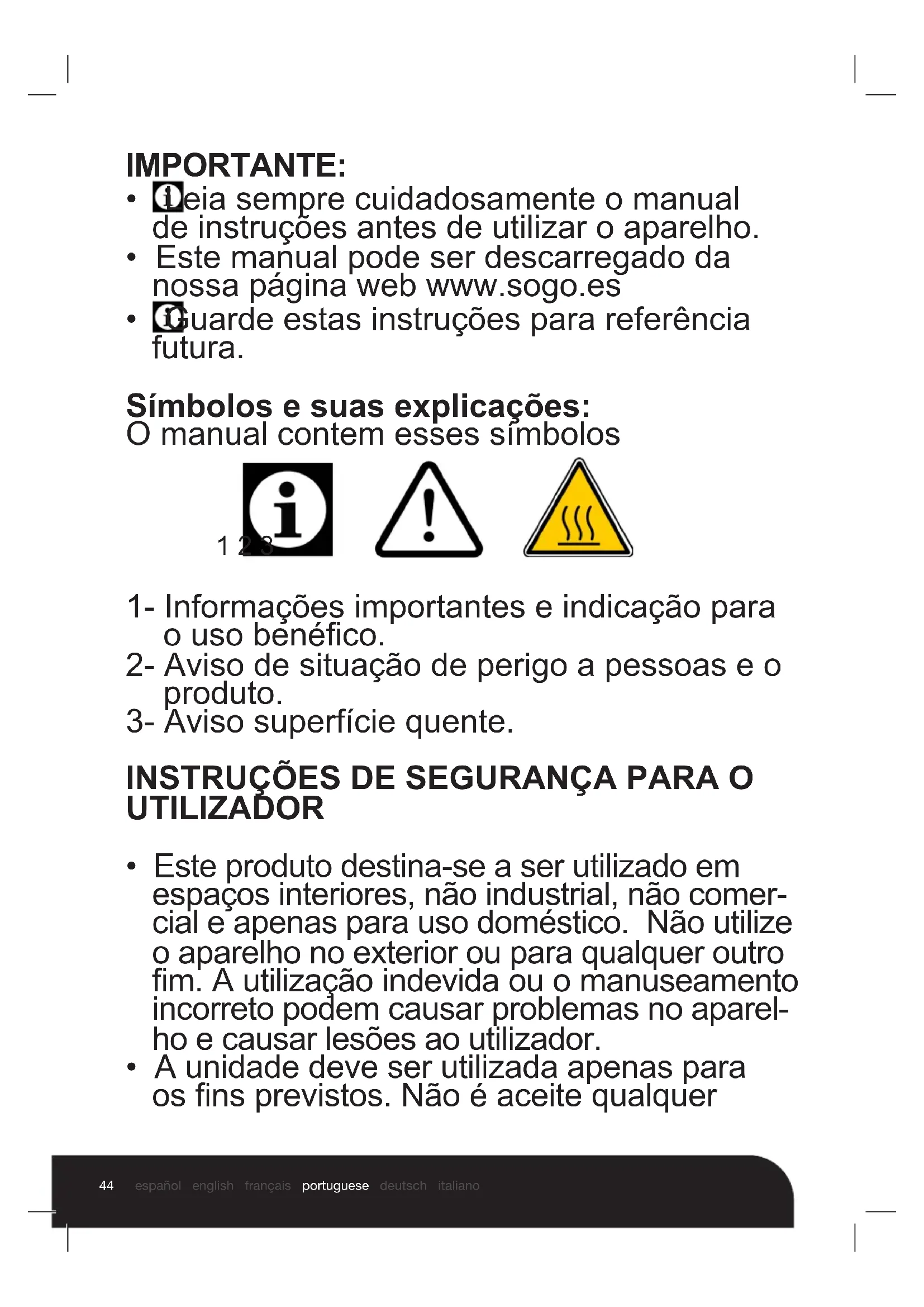 español english français portuguese deutsch italiano responsabilidade por danos resultantes de utilização indevida ou manuseamento incorreto.