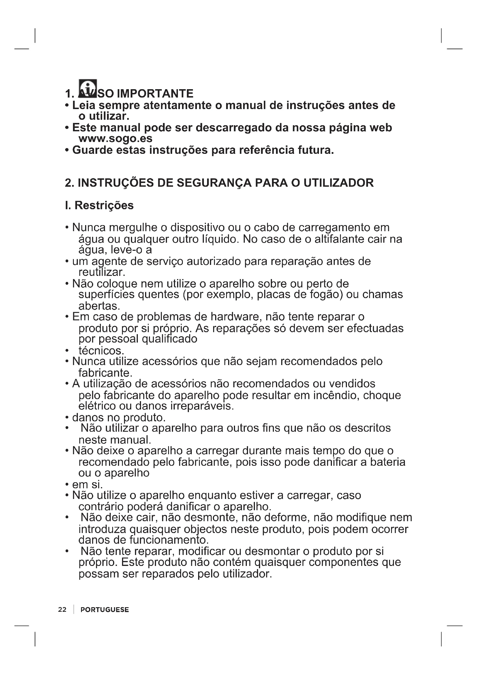 SS8680 - Alto-falante Sogo - Manual de utilização gratuito
