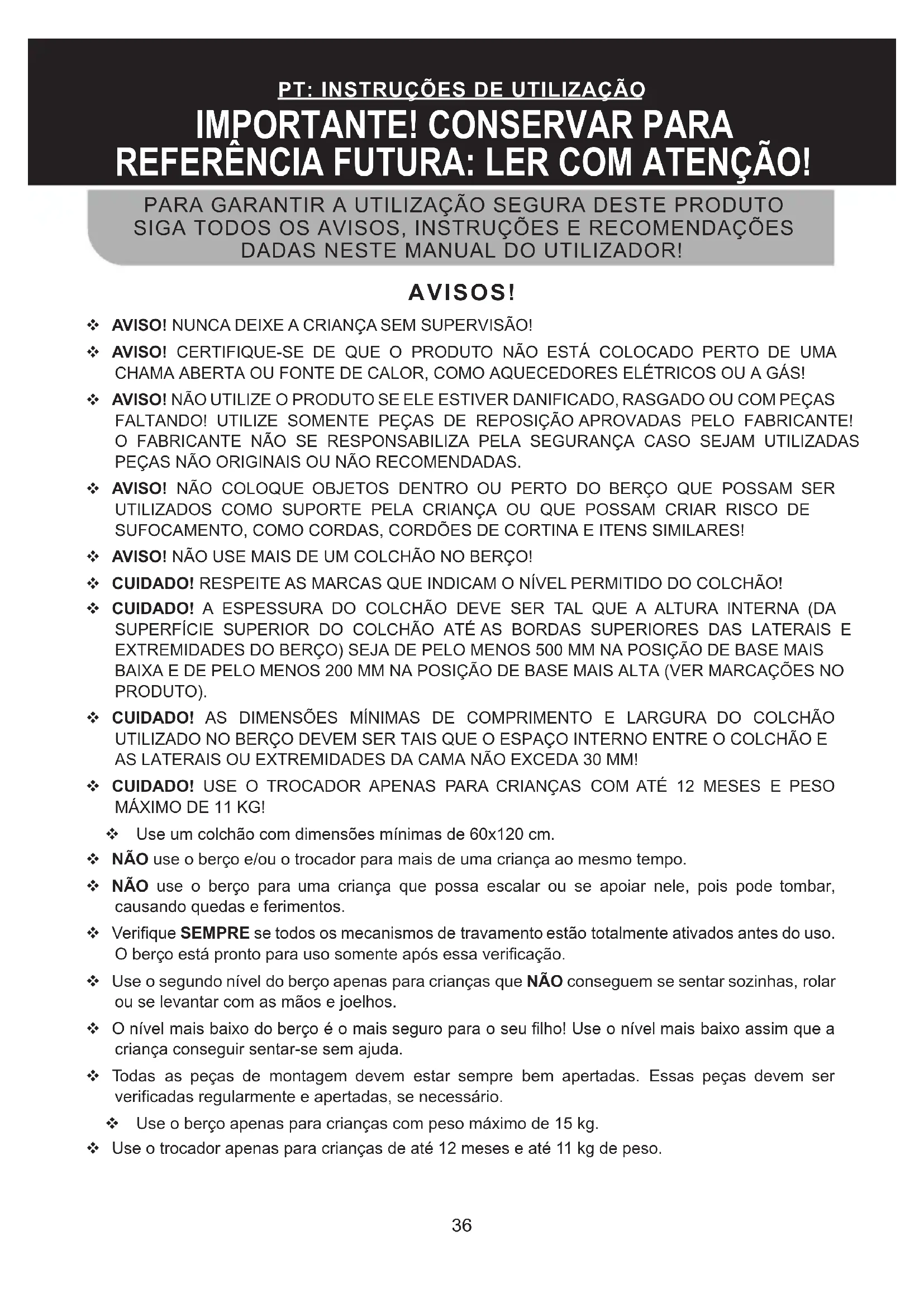 IMPORTANTE! Certifique-se de que o berço está seguro na posicao aberta.
