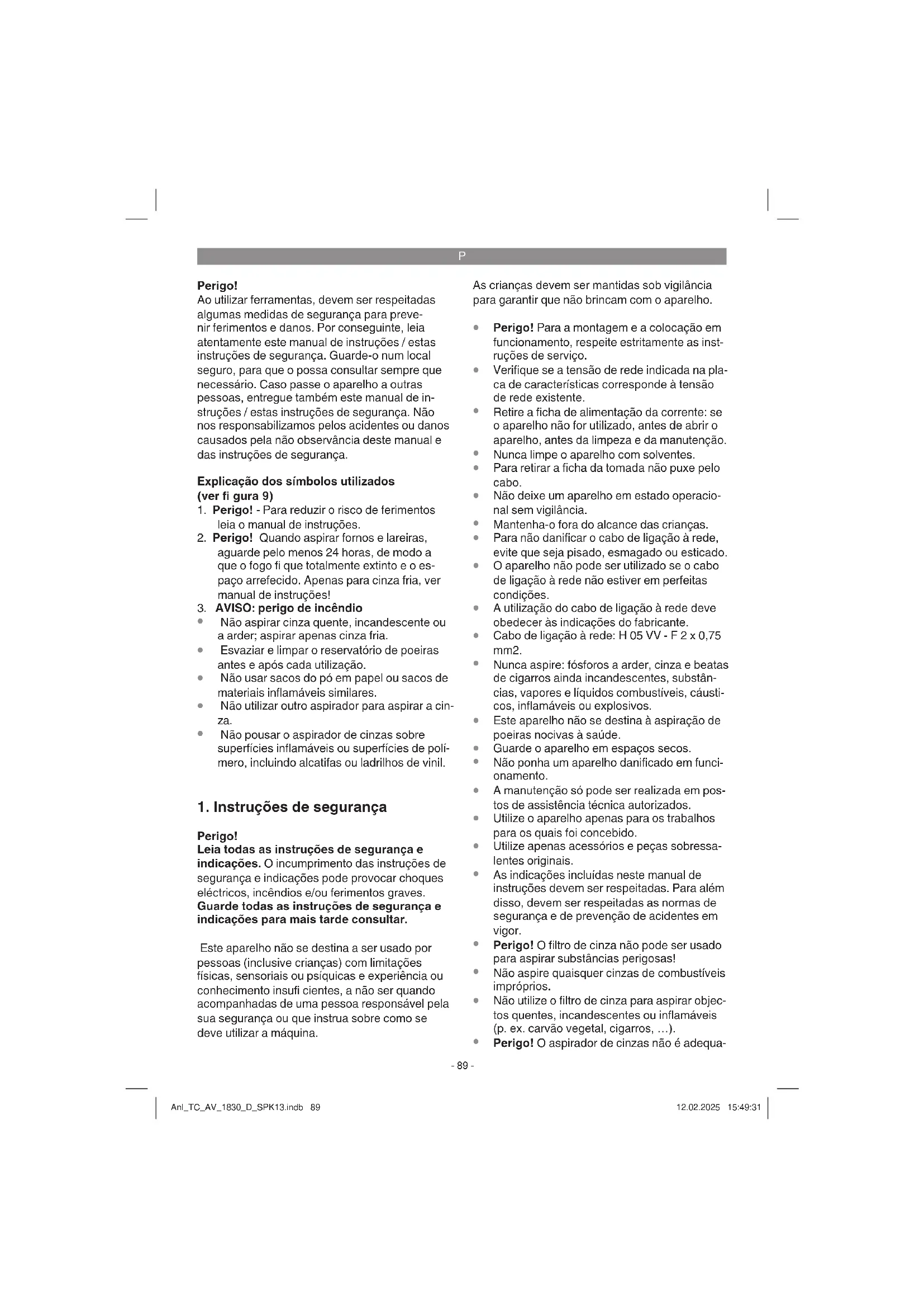 Perigo! O aspirador de cinzas não é adequa- Anl_TC_AV_1830_D_SPK13.indb 89Anl_TC_AV_1830_D_SPK13.indb 89 12.02.2025 15:49:3112.02.2025 15:49:31P