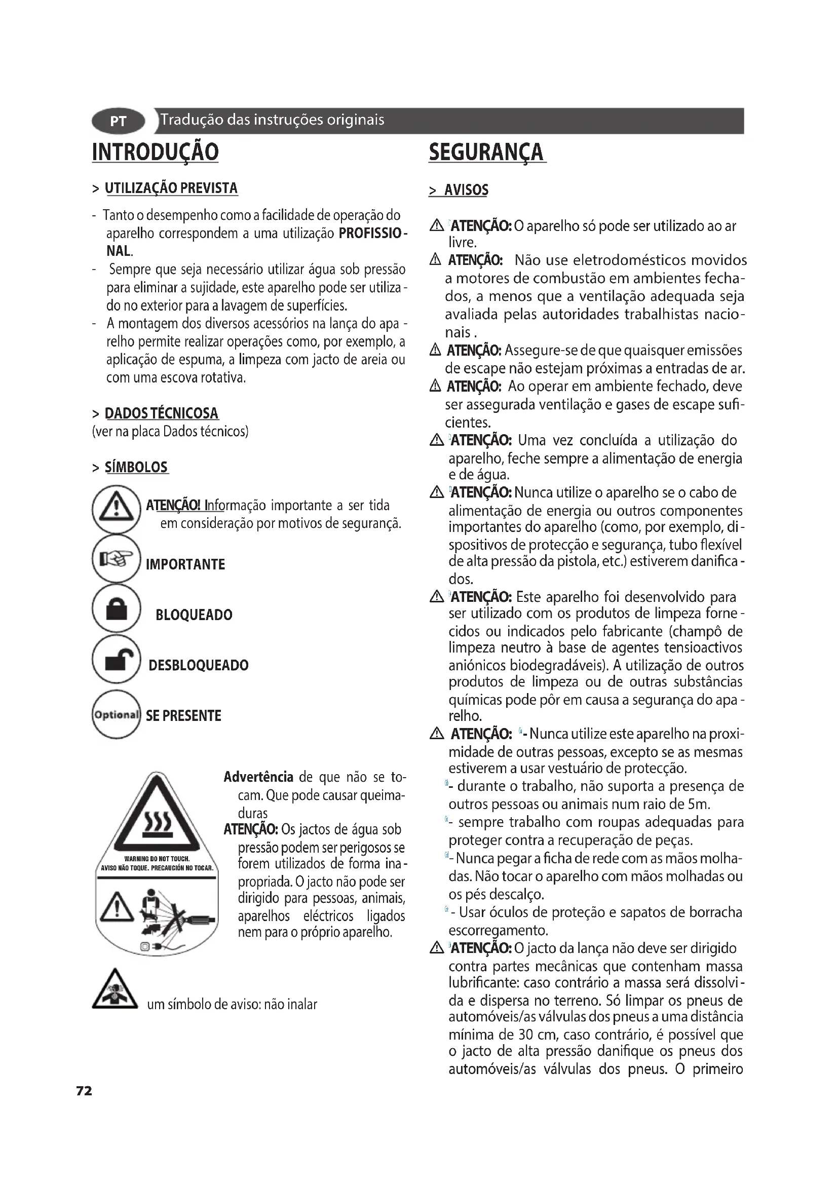 propriada. O jacto não pode ser dirigido para pessoas, animais, aparelhos eléctricos ligados nem para o próprio aparelho. um símbolo de aviso: não inalar Tradução das instruções originais