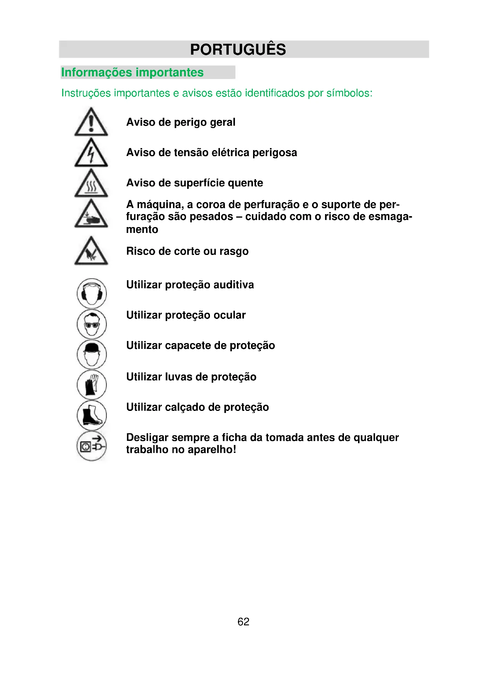 Para operar a perfuradora, siga rigorosamente o manual de instruções e as instruções de segurança correspon- dentes!