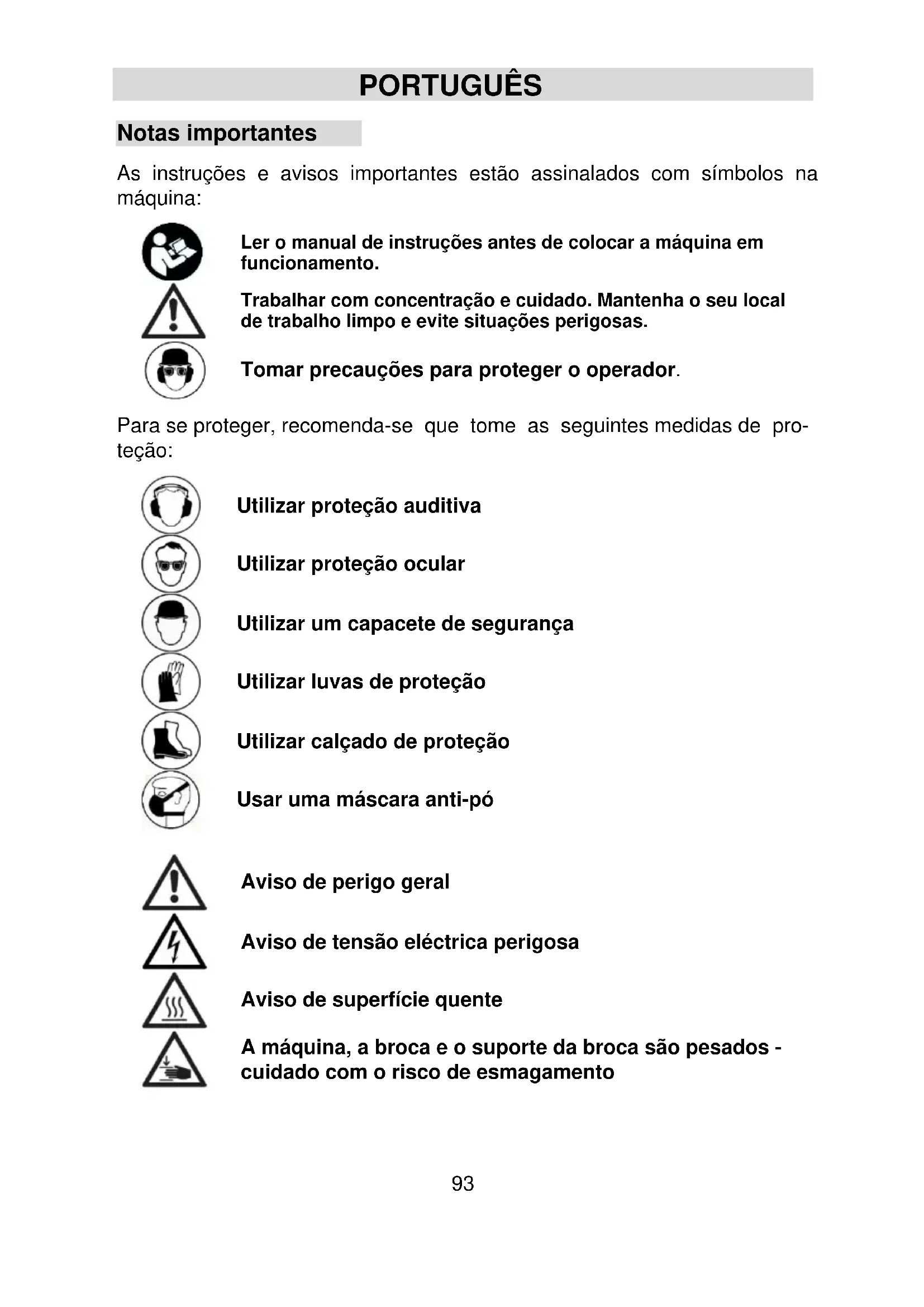 O trabalho seguro com o aparelho só é possível se o utilizador ler o manual de instruções na íntegra e seguir rigorosamente as instruções nele contidas. Para além disso, devem ser respeitadas as instruções gerais de segurança constantes do folheto anexo. Re- ceber instruções práticas antes da primeira utilização. Conservar todas as informações e instruções de segu- rança para consulta futura.