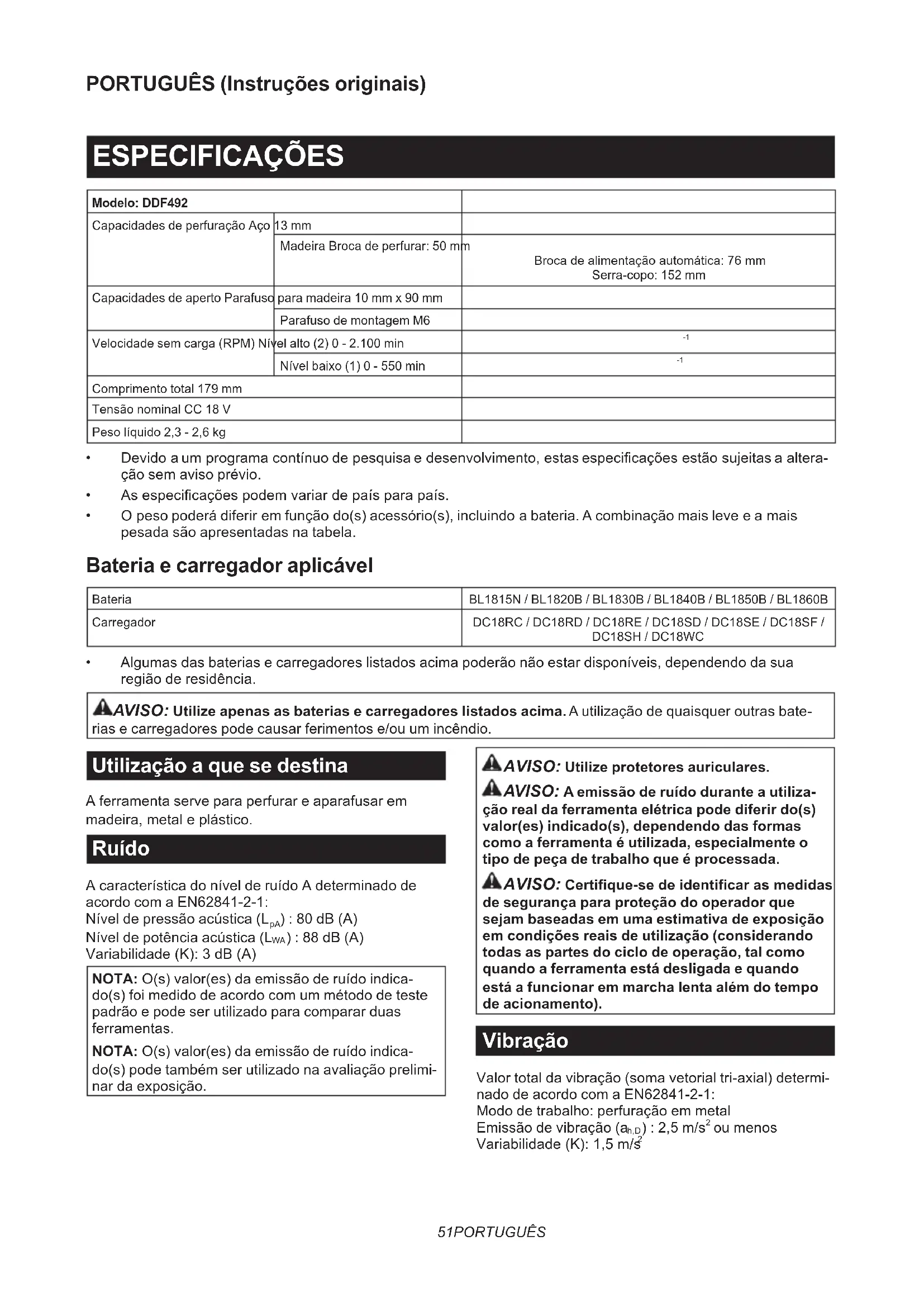 Encontre gratuitamente o manual do aparelho DDF492 MAKITA em formato PDF.