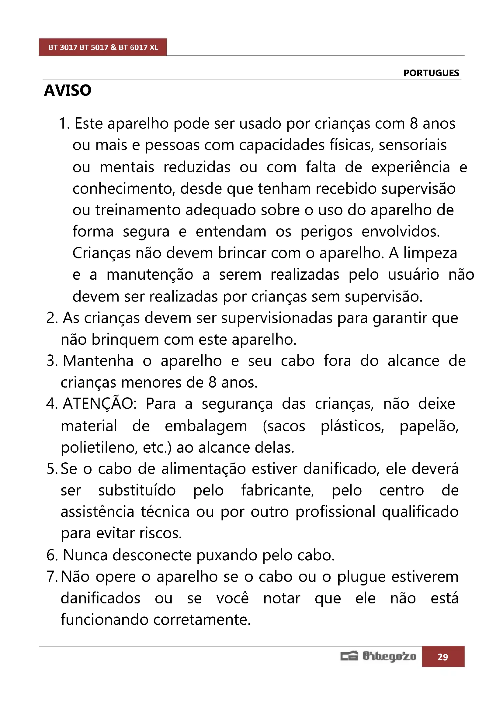 Encontre gratuitamente o manual do aparelho BT 3017 Orbegozo em formato PDF.