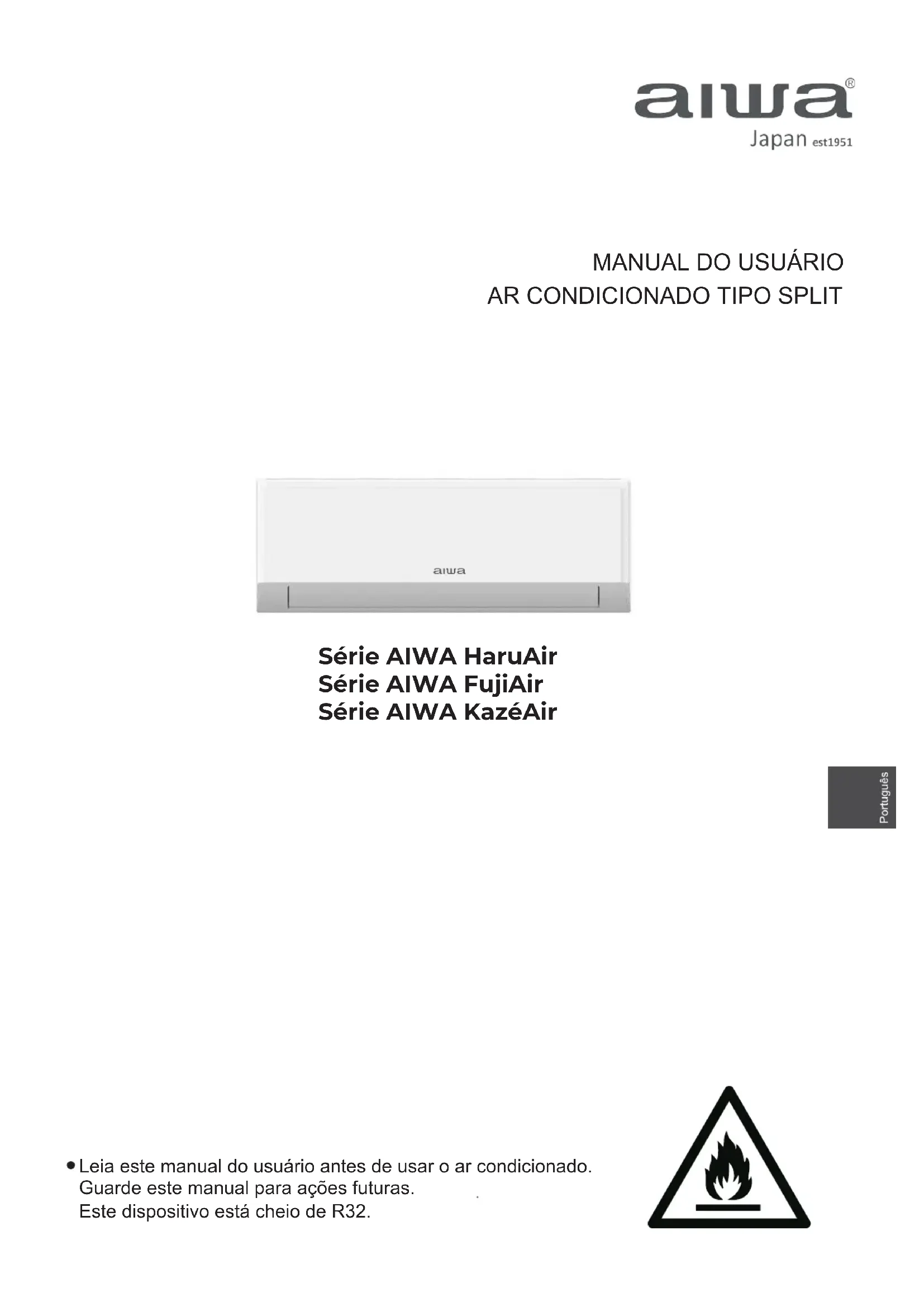 Índice Leia as precauções contidas neste manual antes de iniciar a operação da unidade. Este aparelho está cheia de R32. Mantenha este manual em um lugar onde você possa encontrá-lo facilmente. ADVERTÊNCIA: Não use meios de acelerar o processo de descongelamento ou de limpeza, além dos recomendados pelo fabricante. O aparelho deve ser armazenado em um quarto sem fontes de ignição que se operam continuamente (por exemplo: fogo nu, um aparelho de gás operacional ou um aquecedor elétrico de funcionamento). Não se furar ou queimar. Esteja ciente de que os refrigerantes podem não conter um odor. O aparelho deve ser instalado, operado e mantido numa sala com uma área maior do que 1,2m