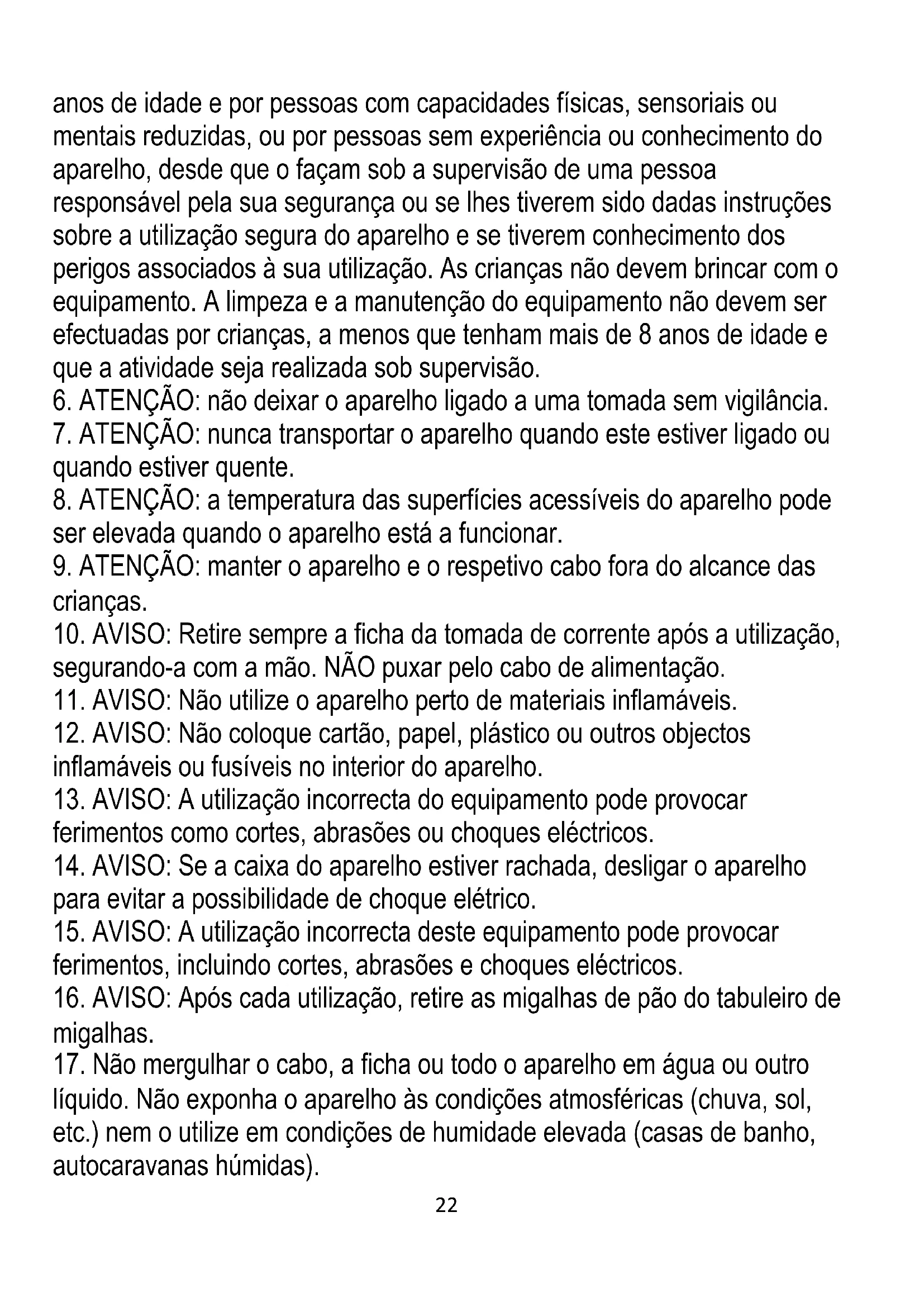 necessário desligar o aparelho, retirar a ficha da tomada e esperar que a torradeira arrefeça.24