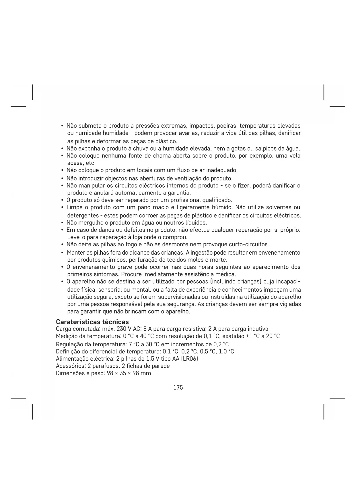 - Não coloque o produto em locais propensos a vibrações e choques - pode causar danos.175