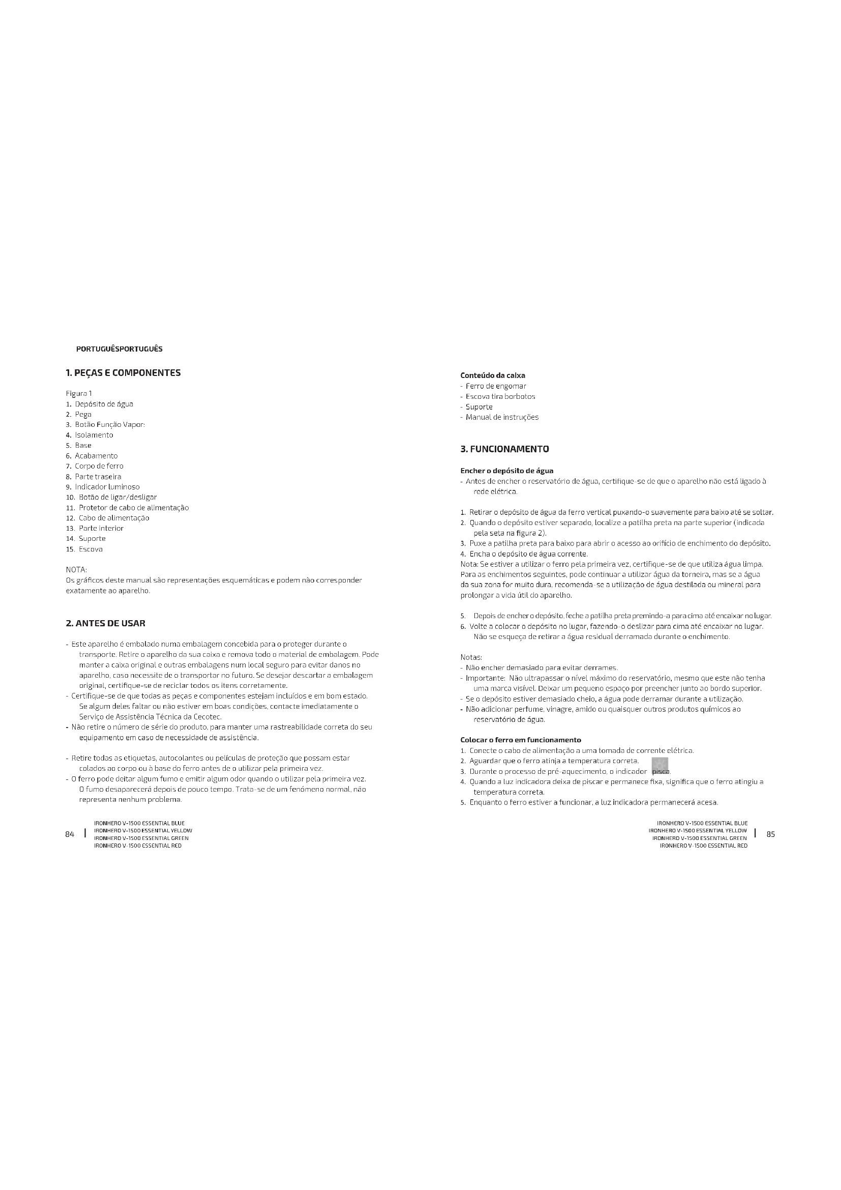 Encontre gratuitamente o manual do aparelho IronHero V1500 CECOTEC em formato PDF.