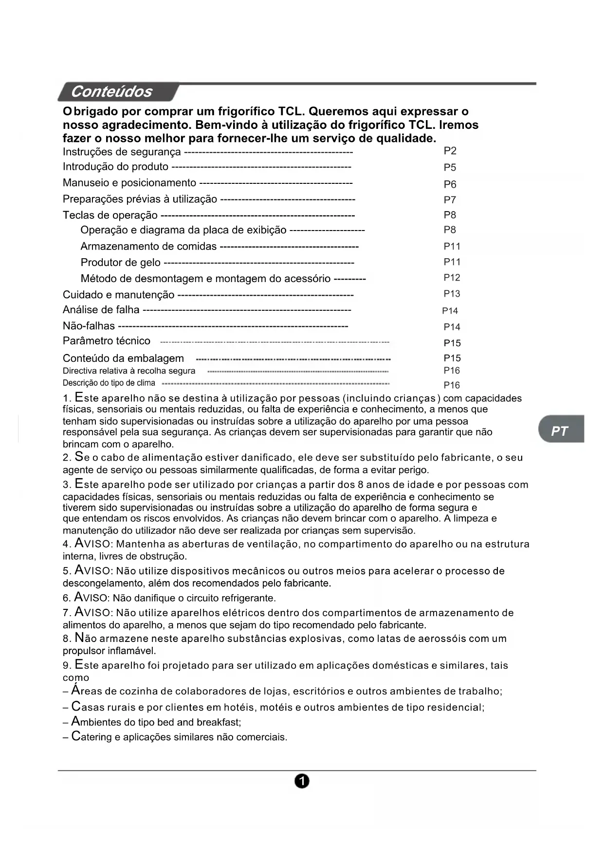 brigado por comprar um frigorífico TCL. Queremos aqui expressar o nosso agradecimento. Bem-vindo à utilização do frigorífico TCL. Iremos fazer o nosso melhor para fornecer-lhe um serviço de qualidade.