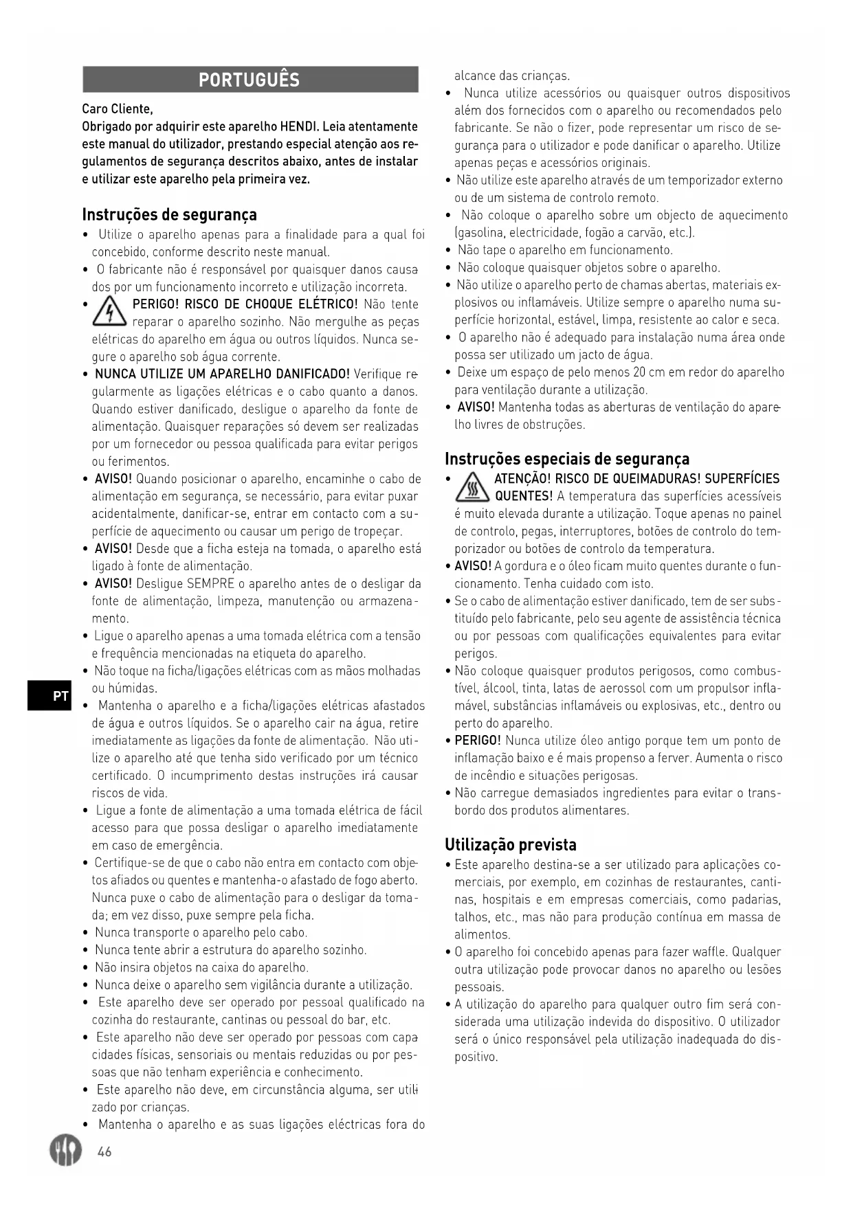 PORTUGUÊS Caro Cliente, Obrigado por adquirir este aparelho HENDI. Leia atentamente este manual do utilizador, prestando especial atenção aos re