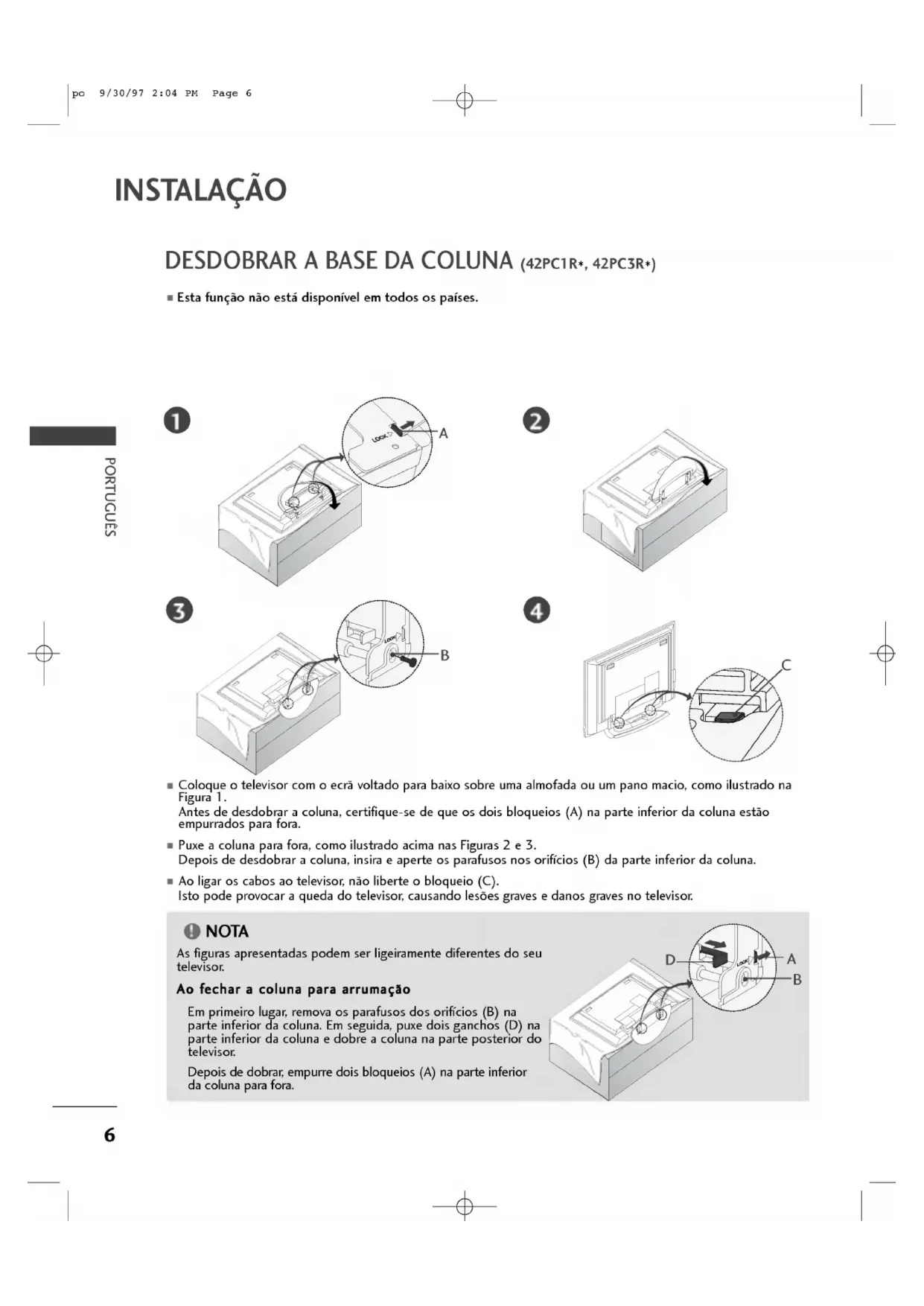 premindo bot o EXIT ap s aexpira o ecr OSD (Instru es Ecr ), esta iraparecer repetidamente quando aparelho estiver ligado. GSe seleccionar pa s errado, teletexto pode n oaparecer correcta- mente noecre podem ocorrer alguns problemas durante opera o