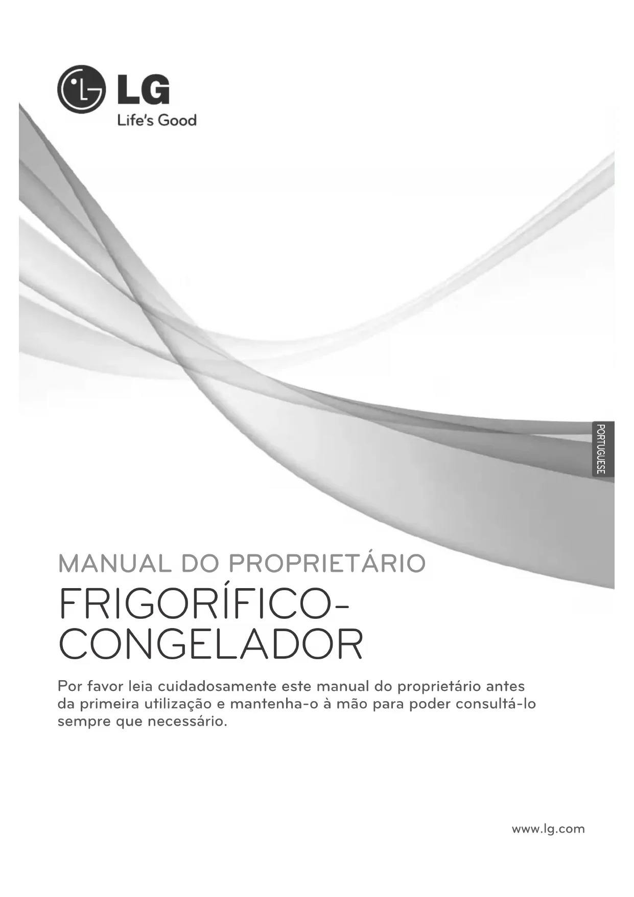 FRIGORÍFICO - CONGELADOR Por favor leia cuidadosamente este manual do proprietário antes da primeira utilização e mantenha-o à mão para poder consultá-lo sempre que necessário. P/No. : MFL64999702 www.lg.com PORTUGUESERegistro O modelo e o número de série figuram na parede posterior do aparelho. Tal número foi atribuído expressamente a este aparelho, não estando, portanto, disponível para outros. Aconselha-se preencher os dados abaixo e guardar esta guia como registo permanente da sua compra. Data de compra : Estabelecimento vendedor : Morada do estabelecimento vendedor : Nº de telefone do estabelecimento vendedor : Nº de modelo : Nº de série :3 Medidas de Segurança Identificação das Peças Instalação Arranque Controlo da Temperatura Zona-OPTI (Arrefecimento) Congelador Express Eco Friendly Auto-Teste Bloqueio On/Off Compartimentos do Frigorífico Luz Vita Alarme da Porta Fazer gelo Descongelação Depósito da Água Compartimento para Garrafas. Prateleira de Vidro Amovível Compartimento do Congelador Máquina produção de Gelo Armazenamento de comida Informação Geral Como Trocar as Portas Limpeza Localização e reparação de defeitos Introdução Instalação Operação Recomendações quanto ao armazenamento de alimentos Cuidados e Manutenção Localização e reparação de defeitos Índice