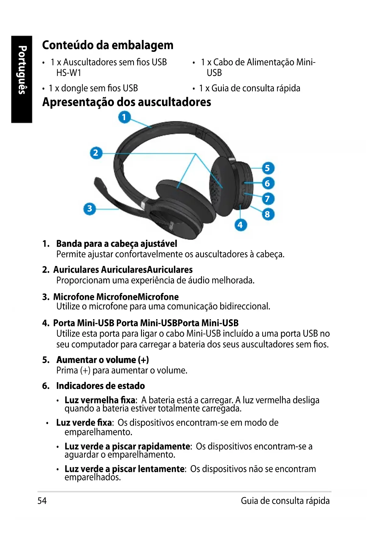 - 1 x dongle sem os USB Apresentação dos auscultadores