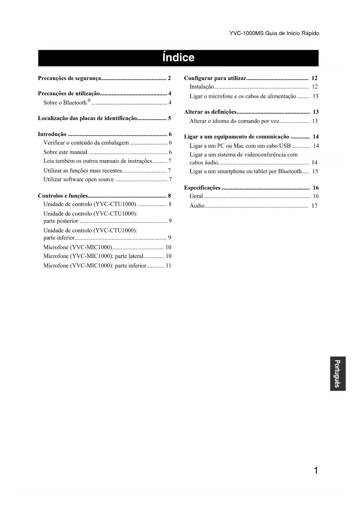 - Áudio ÍndiceYVC-1000MS Guia de Início Rápido p. 17