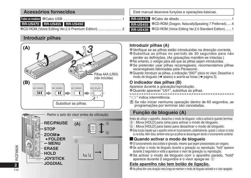 RR-US470 - Gravador de voz PANASONIC - Manual de utilização gratuito