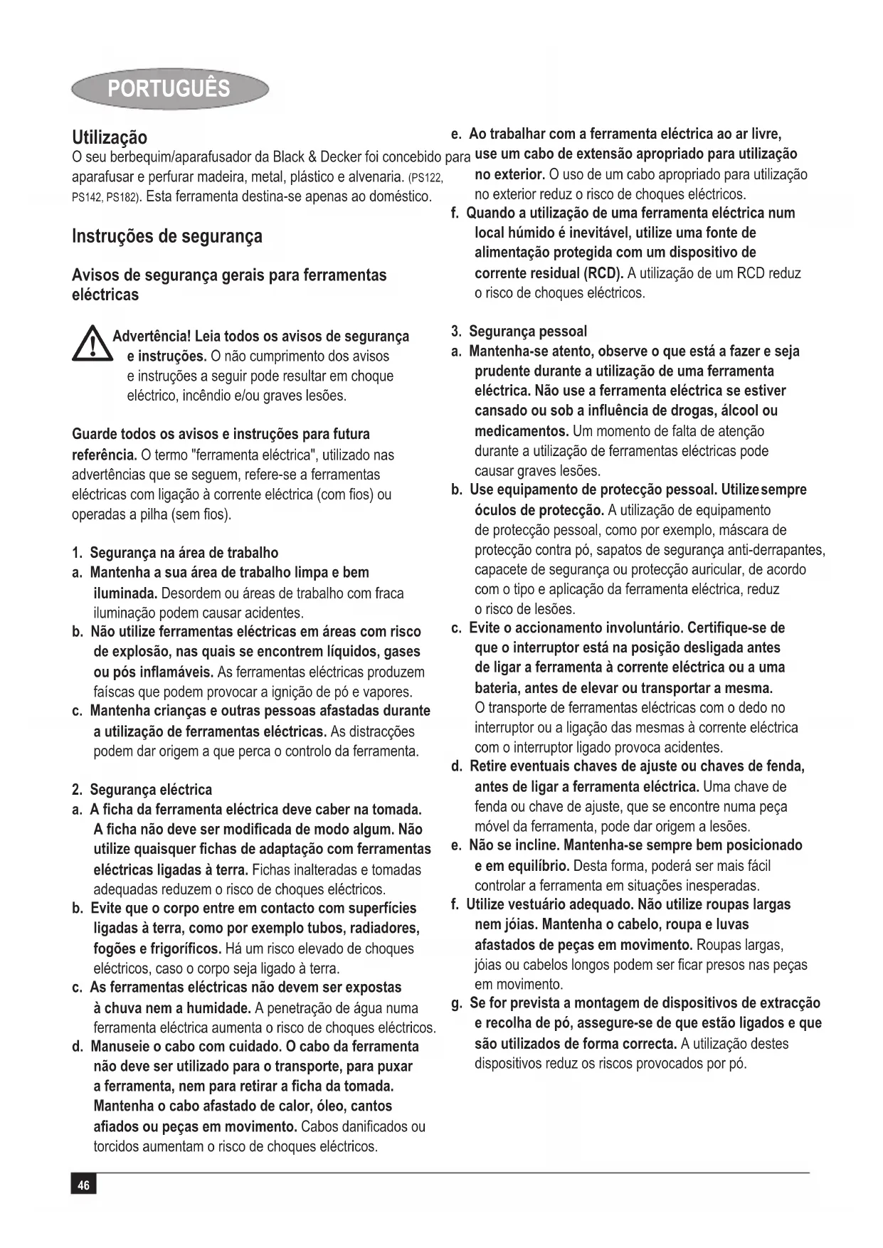 MANUAL DE UTILIZADOR PS122 BLACK & DECKER