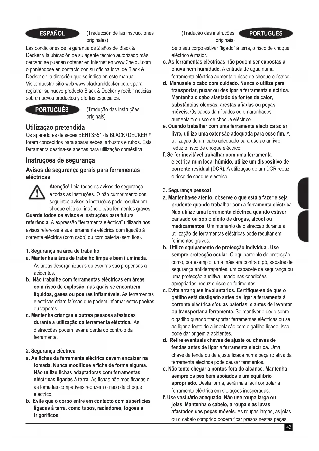 MANUAL DE UTILIZADOR BEHTS551 BLACK & DECKER