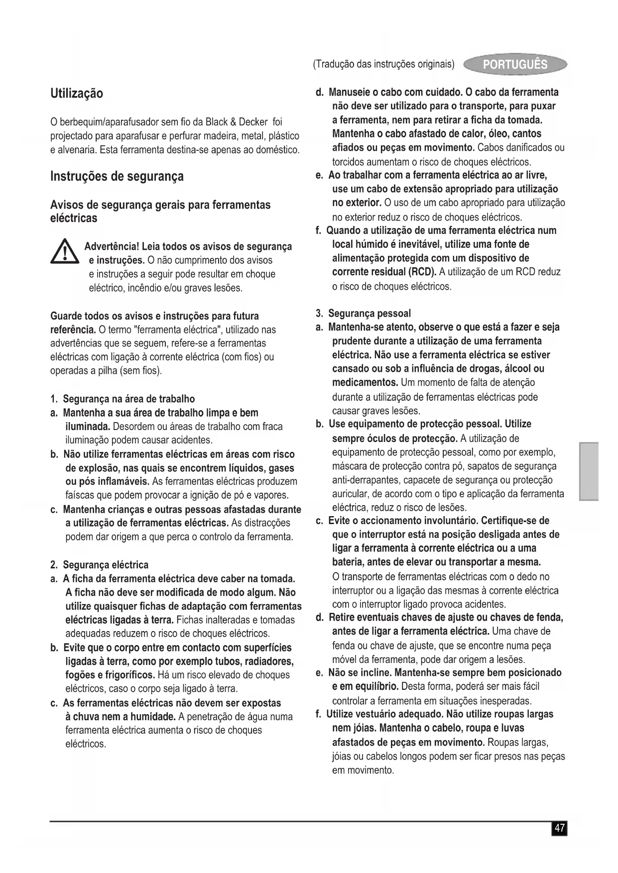 Leia o manual de instruções antes de utilizar.50 (Tradução das instruções originais) PORTUGUÊS Segurança eléctrica