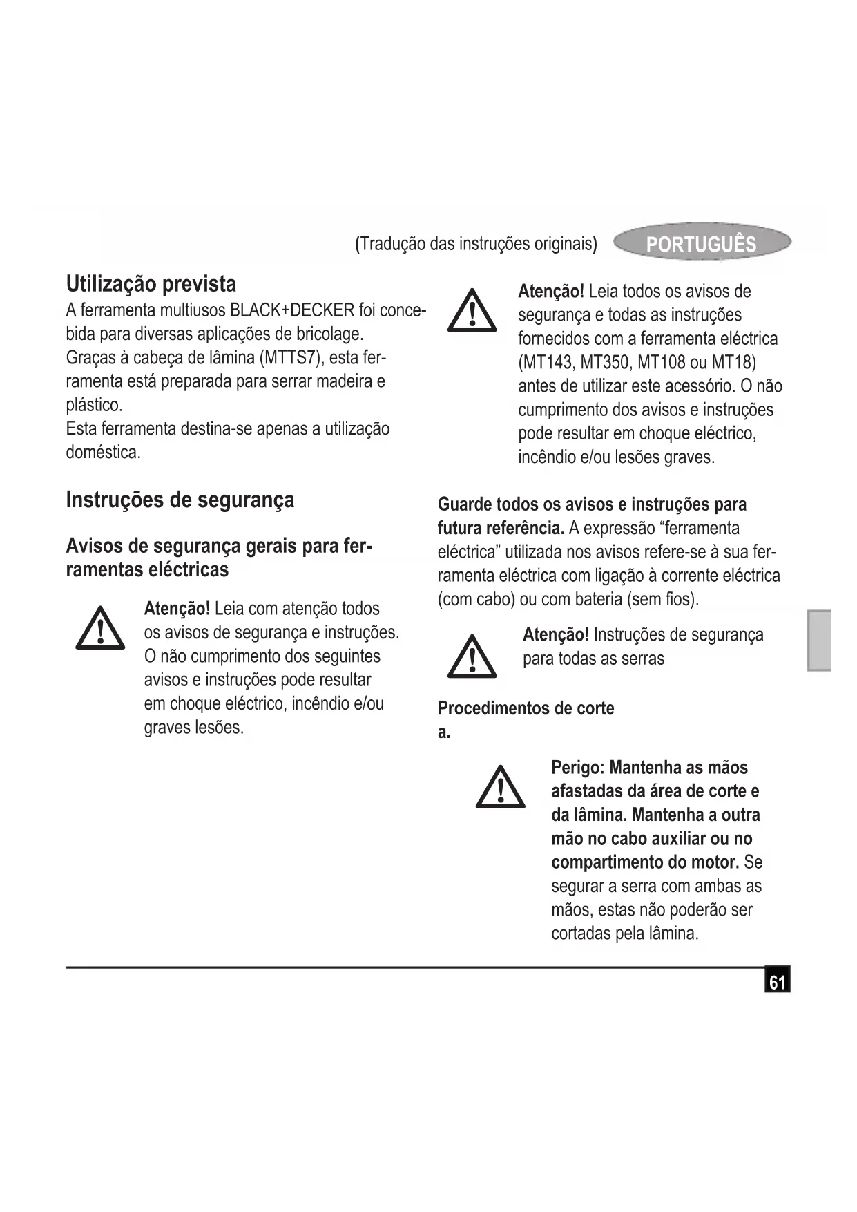 MTTS7 - Serra BLACK & DECKER - Manual de utilização gratuito