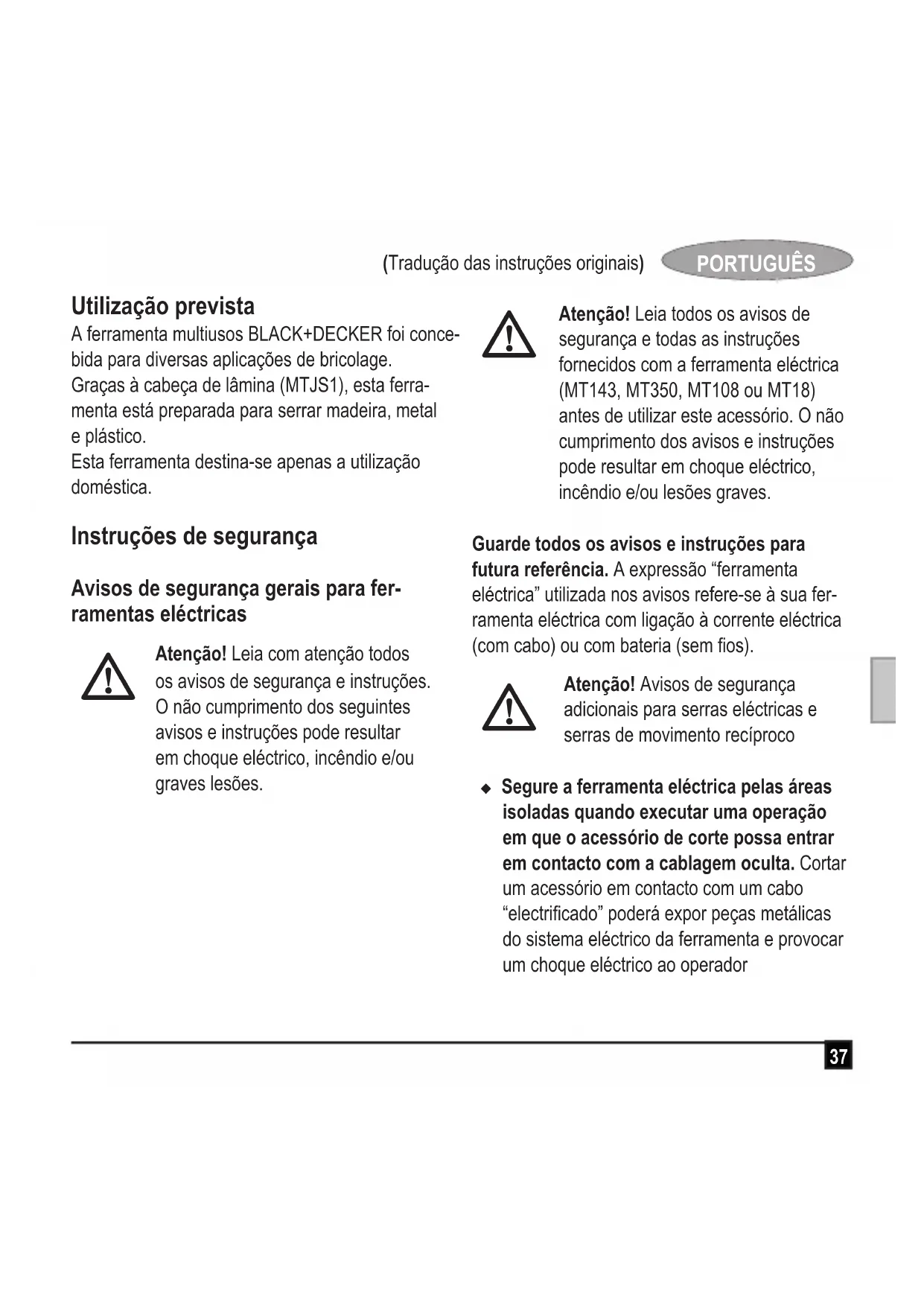 MTJS1 - Serra BLACK & DECKER - Manual de utilização gratuito
