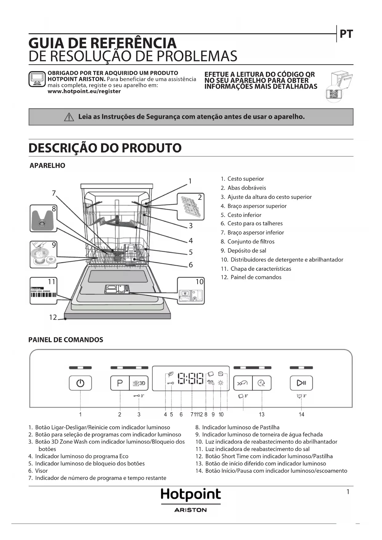 OBRIGADO POR TER ADQUIRIDO UM PRODUTO HOTPOINT ARISTON. Para beneficiar de uma assistência mais completa, registe o seu aparelho em: www.hotpoint.eu/register EFETUE A LEITURA DO CÓDIGO QR