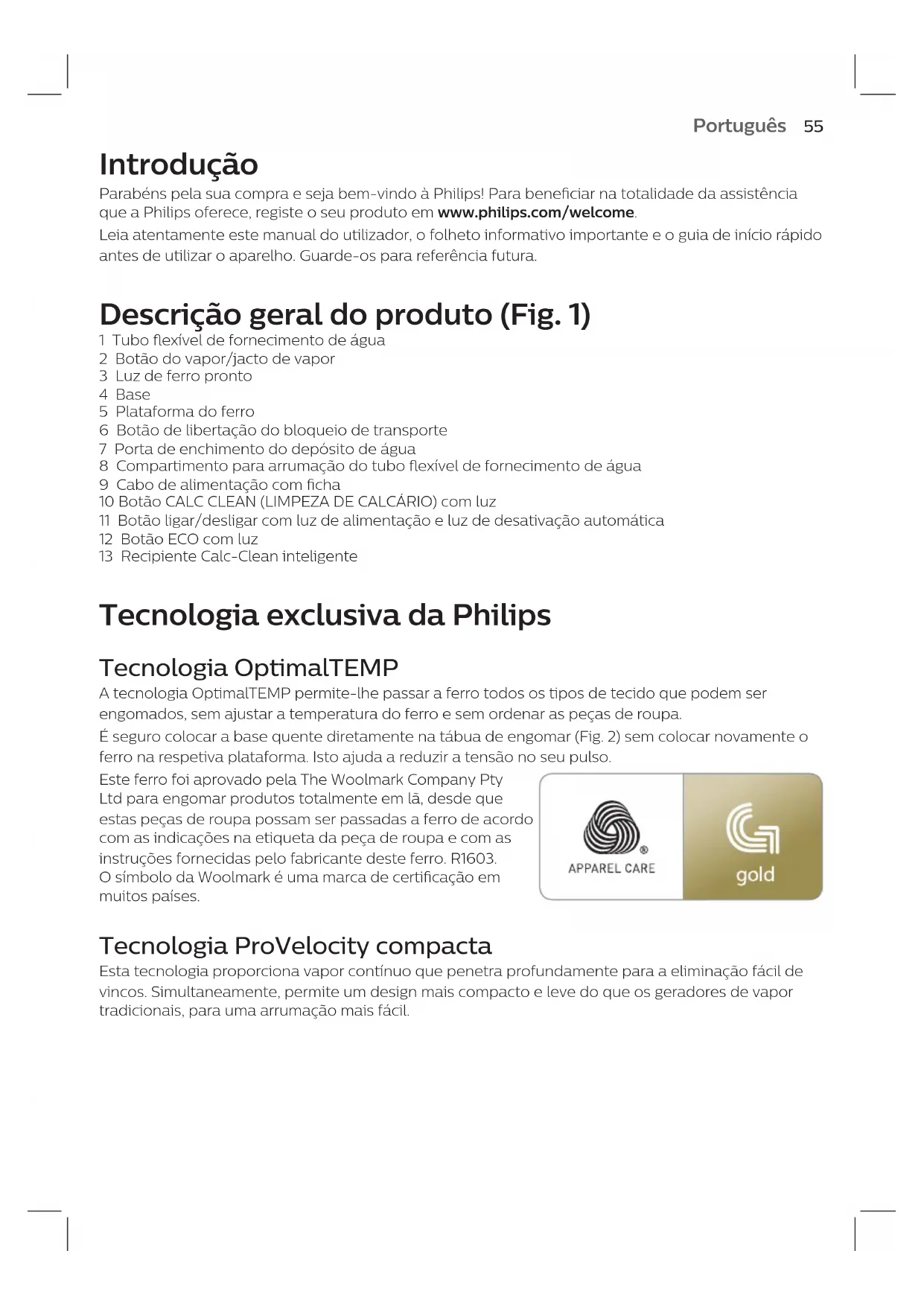 Perfectcare Compact GC7844 - Ferro de passar PHILIPS - Manual de utilização gratuito