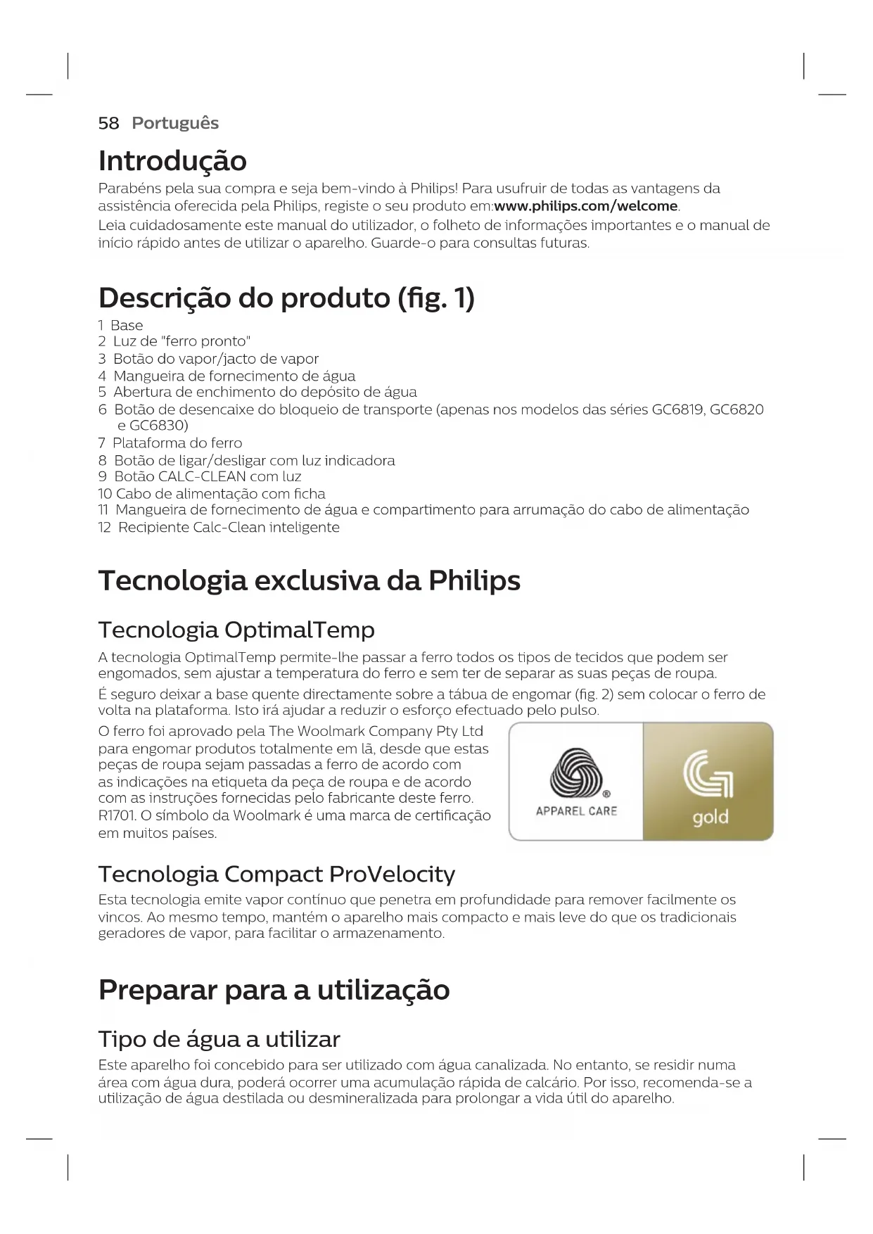 Perfectcare Compact Essential GC6815 - Ferro de passar PHILIPS - Manual de utilização gratuito