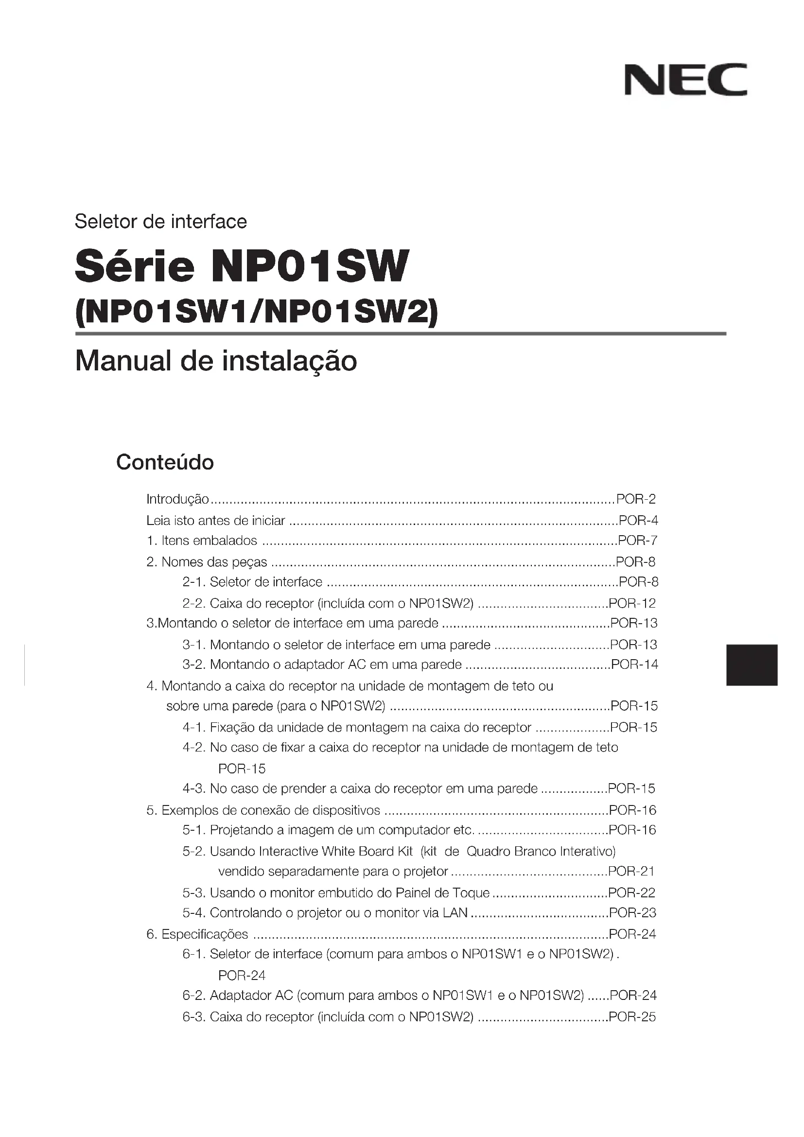 MANUAL DE UTILIZADOR NP01SW1 NEC