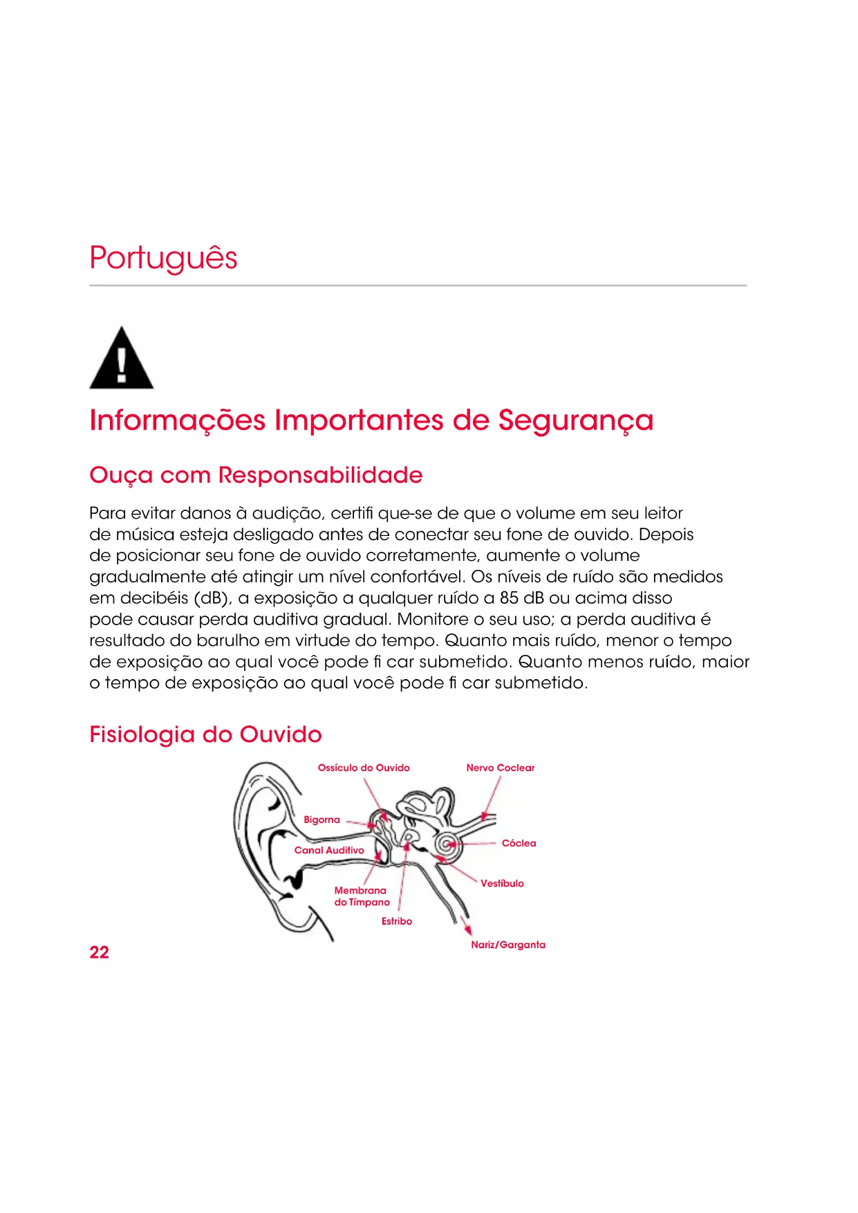 - Informações da tabela em http://www.nidcd.nih.gov/health/education/teachers/pages/common_sounds.aspx Português Esta tabela de decibéis (dB) compara alguns ruídos comuns e mostra suas classicações em relação a possíveis danos à audição.24 Português “…. uma pessoa normal pode ouvir a um iPod de modo seguro por 4,6 horas por dia em volume a 70%.” “.... saber os níveis que podem ser atingidos ao ouvir música e por quanto tempo é extremamente importante.” Fonte http://www.cbc.ca/health/story/2006/10/19/music-earphones.html Aproveite ao máximo seu equipamento e desfrute do excelente desempenho de áudio mesmo em níveis seguros. Nossos fones de ouvido permitirão que ouça mais claramente como nunca em níveis mais baixos de volume. Utilize com Responsabilidade Não utilize fones de ouvido quando não for seguro—enquanto estiver dirigindo um veículo, atravessando ruas ou durante qualquer atividade ou em um ambiente onde for necessária a sua total atenção. É perigoso dirigir utilizando fones de ouvido e, em muitos lugares, ilegal porque ele diminui suas chances de ouvir sons fora do seu veículo que podem salvar vidas, como a buzina de outro carro e sirenes de veículos de emergência. Evite a utilização de seu fone de ouvido enquanto estiver dirigindo. Em vez disso, utilize transmissor FM em seus dispositivos de mídia móveis. Aprenda como estabelecer um nível seguro de volume e veja outras orientações importantes de segurança da Consumer Electronics Association [Associação dos Consumidores de Produtos Eletrônicos] em www.ce.org e da Deafness Research Foundation [Fundação de Pesquisa sobre a Surdez] em www.drf.org.25 Português Utilização do Microfone Remoto O fone de ouvido Beats Mixr vem equipado com um cabo de microfone remoto que oferece mais liberdade para controlar seu telefone ou o leitor de música. As funções incluem: